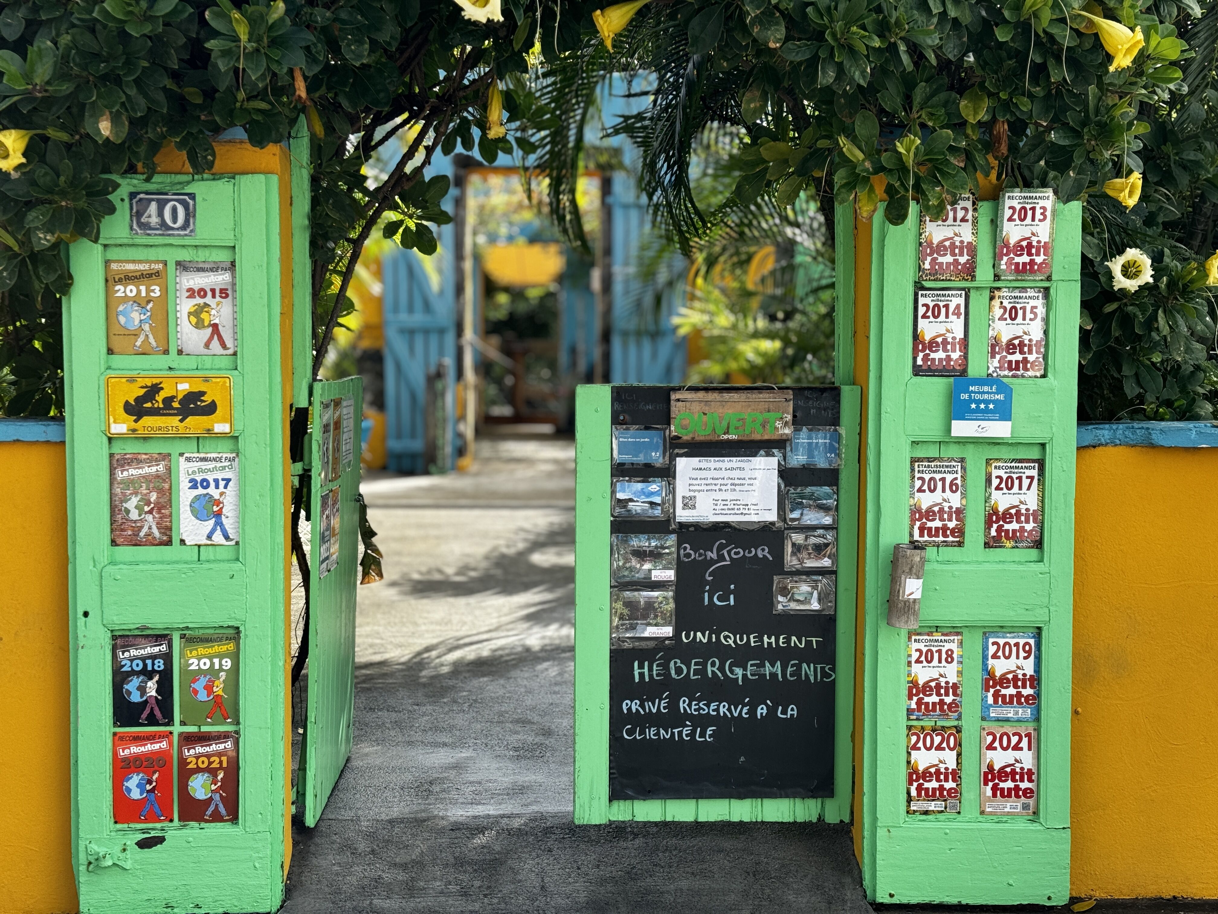 During the night it rained and it poured! However by the time we were ready to go ashore, the sun came out and the town of Bourg was fresh, clean, and ready for business. Instead of a “Good Morning” or “Buenos Dias”, we had to remember to say “Bonjour!” We were in a French-speaking country for the day, and the ambiance was overwhelmingly of bygone French colonialism mixed with trendy boutiques, cafes, and friendly cats. On landing I could almost smell the coffee and croissants brewing and baking!