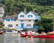 Eventually, we approached the base of the rocky slopes and had great views of the dovekie colony. Huge flocks of the tiny seabirds flew around the site, filling the air with their twittering call; their fast wingbeats and their noisy calls reminded me of the more tropical latitudes where parrots live. Dovekies, also known as little auks, are the most northerly member of the puffin family. In my opinion, they are one of the most beautiful of the auks.