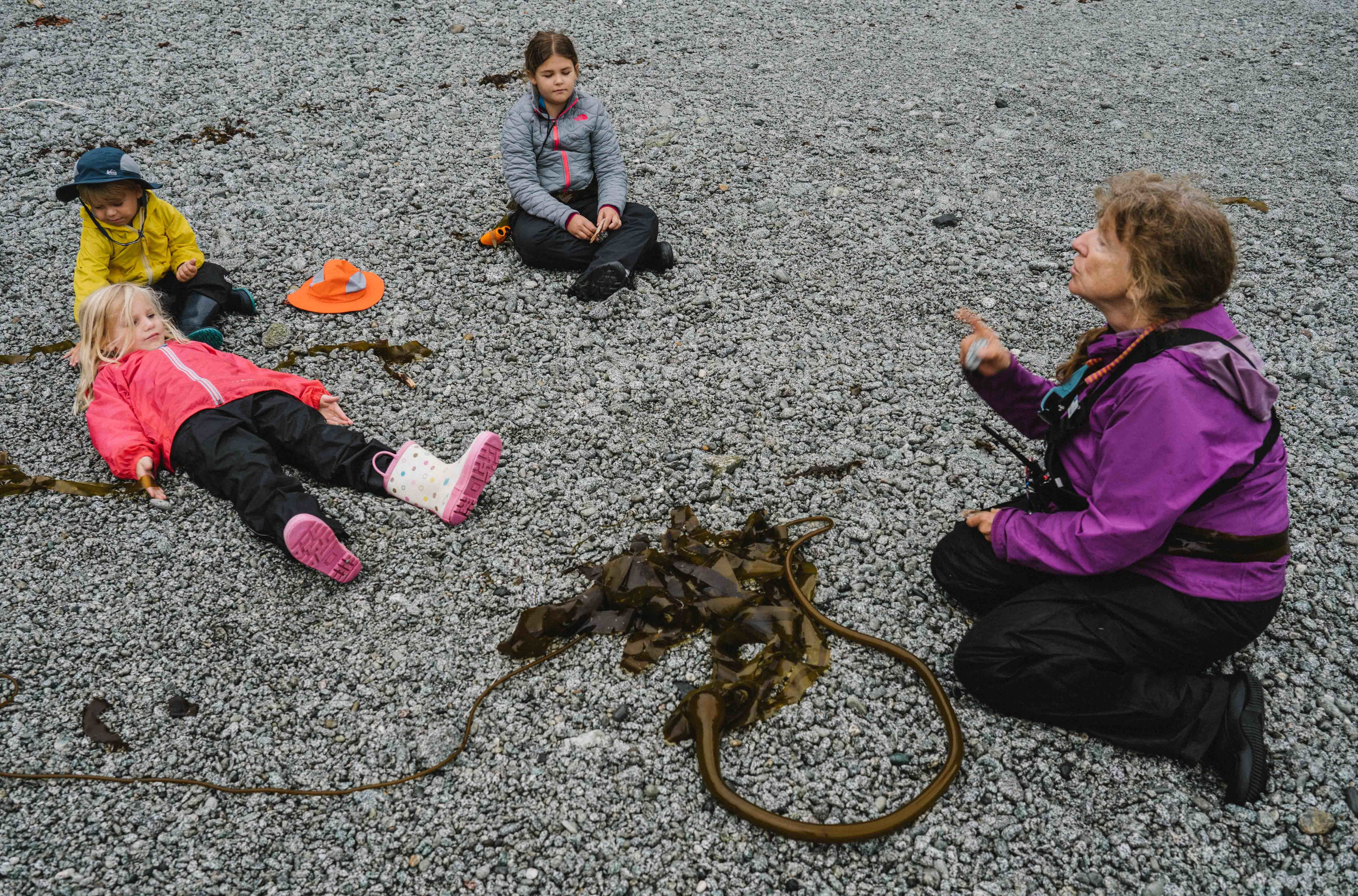 George Island and the Inian Islands are located at the confluence of the Pacific Ocean and the Inside Passage, meaning that the incoming tide brings rushing water, bountiful nutrients, and hungry wildlife with it. Early in the morning we landed on George Island to explore the temperate rainforest, as well as the marine kelp forests by kayak, and stand-up paddleboards. We later boarded our Zodiacs to explore the shorelines of the Inians. Among the highlights of the day were up-close views of humpback whales, a rare sighting of a peregrine falcon, and hordes of Steller sea lions.