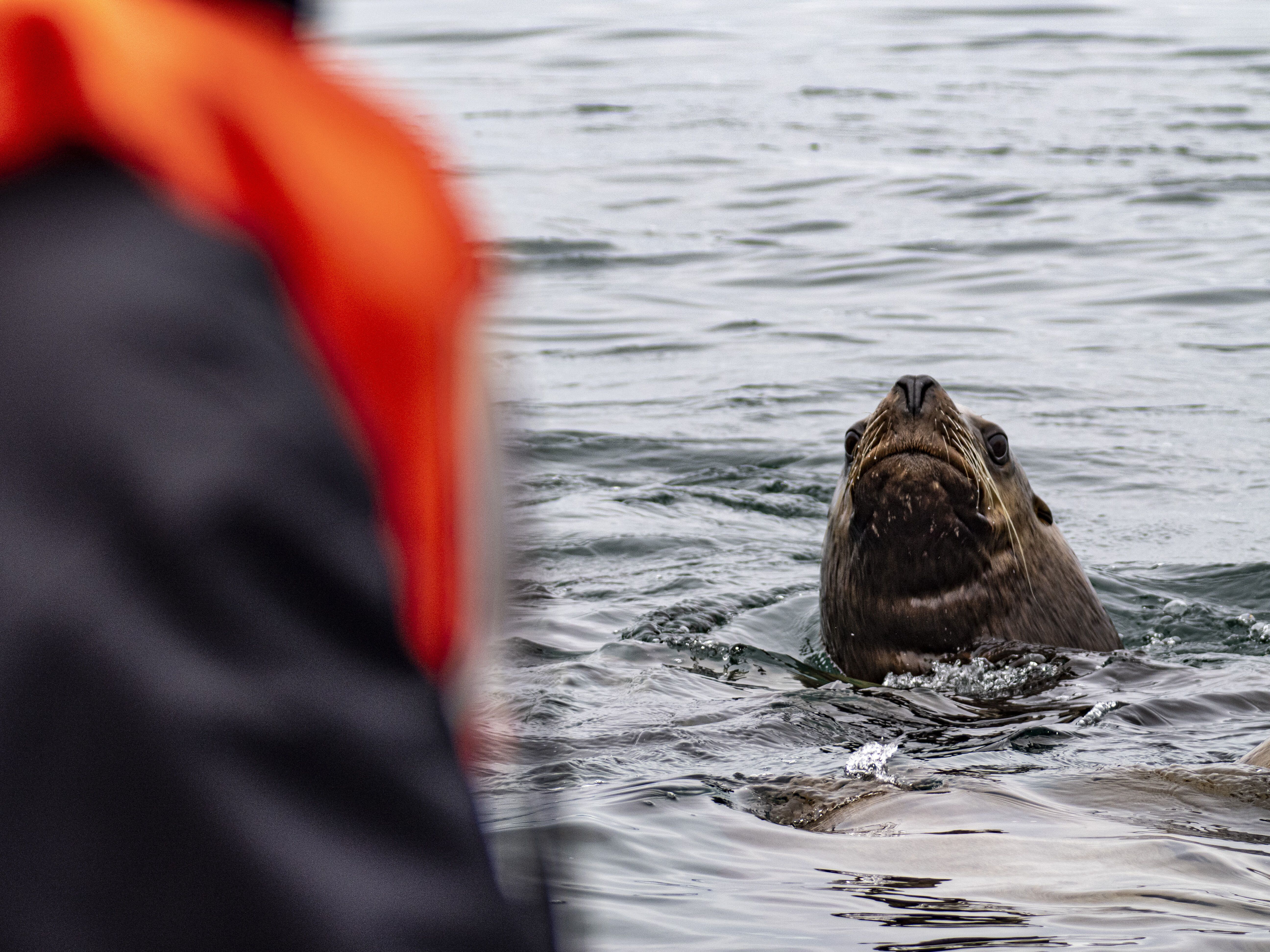 Welcome to the Inside Passage! It was a foggy and calm day at the northernmost entrance to the Inside Passage. We anchored on the northern cove of Inian Island for a fun-filled morning of Zodiac tours around the Inian Islands, a truly beautiful waterway filled with rich wildlife, sea lions, and sea otters galore! The whole tour was witness to hundreds of pelagic avian life; guillemots and gulls and cormorants flying overhead while bald eagles scoured the ocean surface for fish. By mid-morning, the clouds had lifted and blue skies and warm sun finally peeked through.