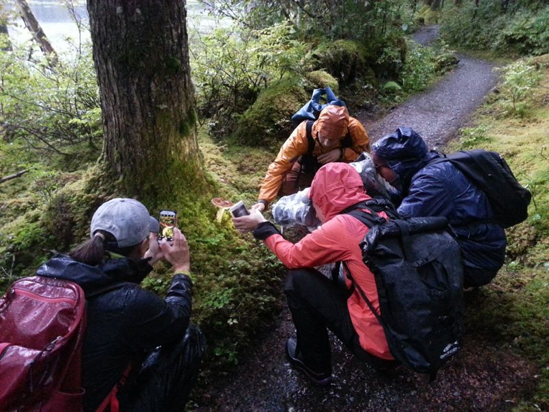 Waves and upwelling water at the Inian Islands took everyone for quite a ride this morning! All of the wildlife were feasting and taking advantage of the ripping currents. We saw diving birds, sea otters crunching on crabs, Stellar sea lions thrashing salmon into bits, and humpbacks surfacing all around. The afternoon brought more mist and smiles as hikers explored Fox Creek and kayakers cruised the coastline.