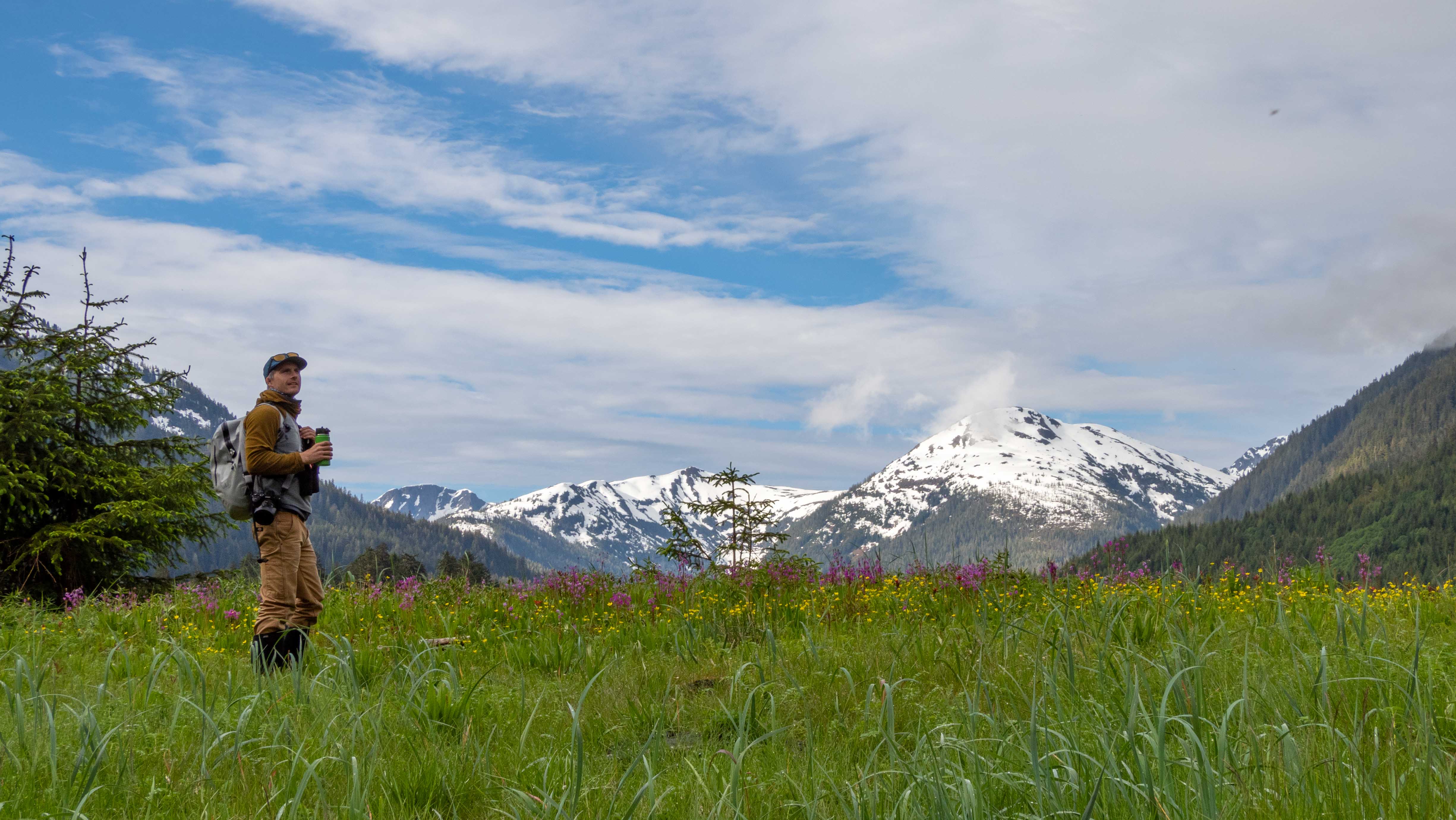 After lunch we all explored George Island. A short hike led us to a World War II gun that was placed here to protect the strategic entrance to the Inside Passage. Upon returning to the beach, many took advantage of the sunny and warm weather to do a polar plunge. Hot drinks served with a smile by our bartender Shayne was a perfect ending to our day’s activities. We pulled anchor and headed towards Juneau while thinking back on our incredible voyage. Alaska delivered its finest this week, with abundant wildlife, great weather, and postcard perfect scenery.