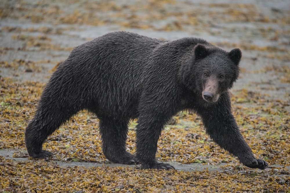 Guests piled into small watercrafts to take to the ocean for a morning Zodiac cruise. Beginning with geologic explanations, naturalists and drivers cruised towards the first wildlife hub near the outer coast. A rookery of Steller sea lions sits near an area of heavy current, waiting for salmon and halibut to get close. The Steller sea lions are the largest species of eared seal worldwide. At 2,400 pounds, the males can reach 12 feet long. The females are significantly smaller, and this species enjoys spending time together on land. Moving on from the Steller sea lions, the vessels rounded the corner to encounter incredible animals that are rarely seen from small boats. Transient killer whales, or biggs killer whales, moved in a small pod towards the sea lion rookery. Three adults, one male, and two females slowly and methodically navigated towards their potential prey. These whales reach a maximum size of roughly 30 feet, with a male dorsal fin rocketing to six feet tall.