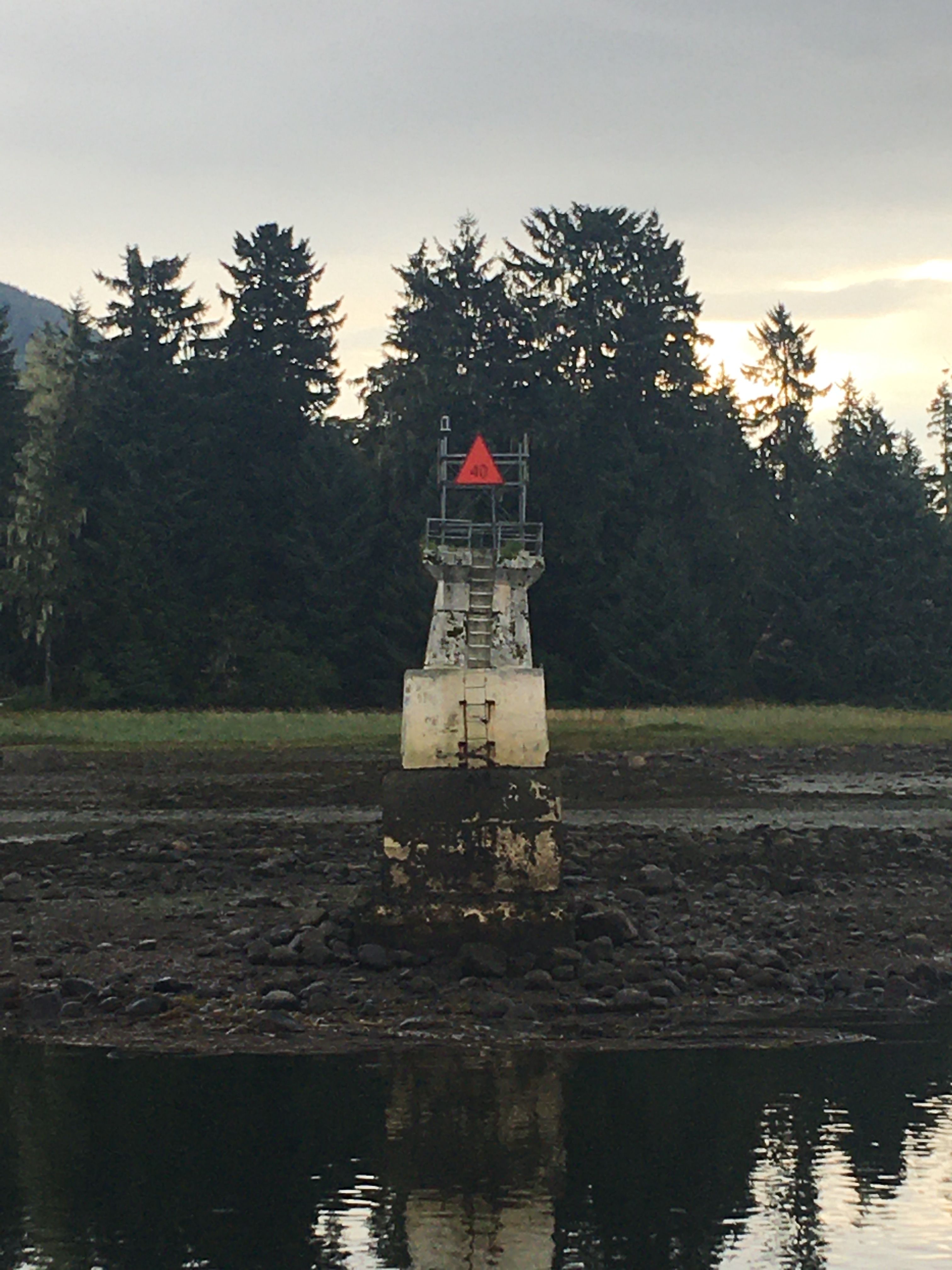 During the night, we transited around the north end of Admiralty and Chichagof Islands to the Inian Islands and Cross Sound, the northwestern most opening of the Inside Passage out to the Gulf of Alaska and the open Pacific Ocean. Twice a day the great tidal swell of the oceans floods and ebbs into the interior waterways; perhaps like long, slow breaths in the right nostril of a giant southeast Alaskan dragon, sleeping on its stony bed, its rough skin draped in an emerald cloak of spruce and hemlock. The influx and efflux of water connects these inland shores to the nutrients and richness of the ocean, acting as a conduit for water, fish and wildlife into the dragon’s belly.