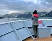 After a full morning experiencing the wild wonders that Alaska has to offer, we transited a short distance to George Island. It was time to explore another promising location! We experienced it all by land and water. Some of us started out kayaking, getting an up-close view of the kelp and jellies that live just below the water, while others investigated the fungi and moss along the trails of the island. We all convened at the beach, and those bold enough stripped down and took the polar plunge. Cheers erupted as our brave plungers truly experienced the ocean that has been guiding us along this trip.