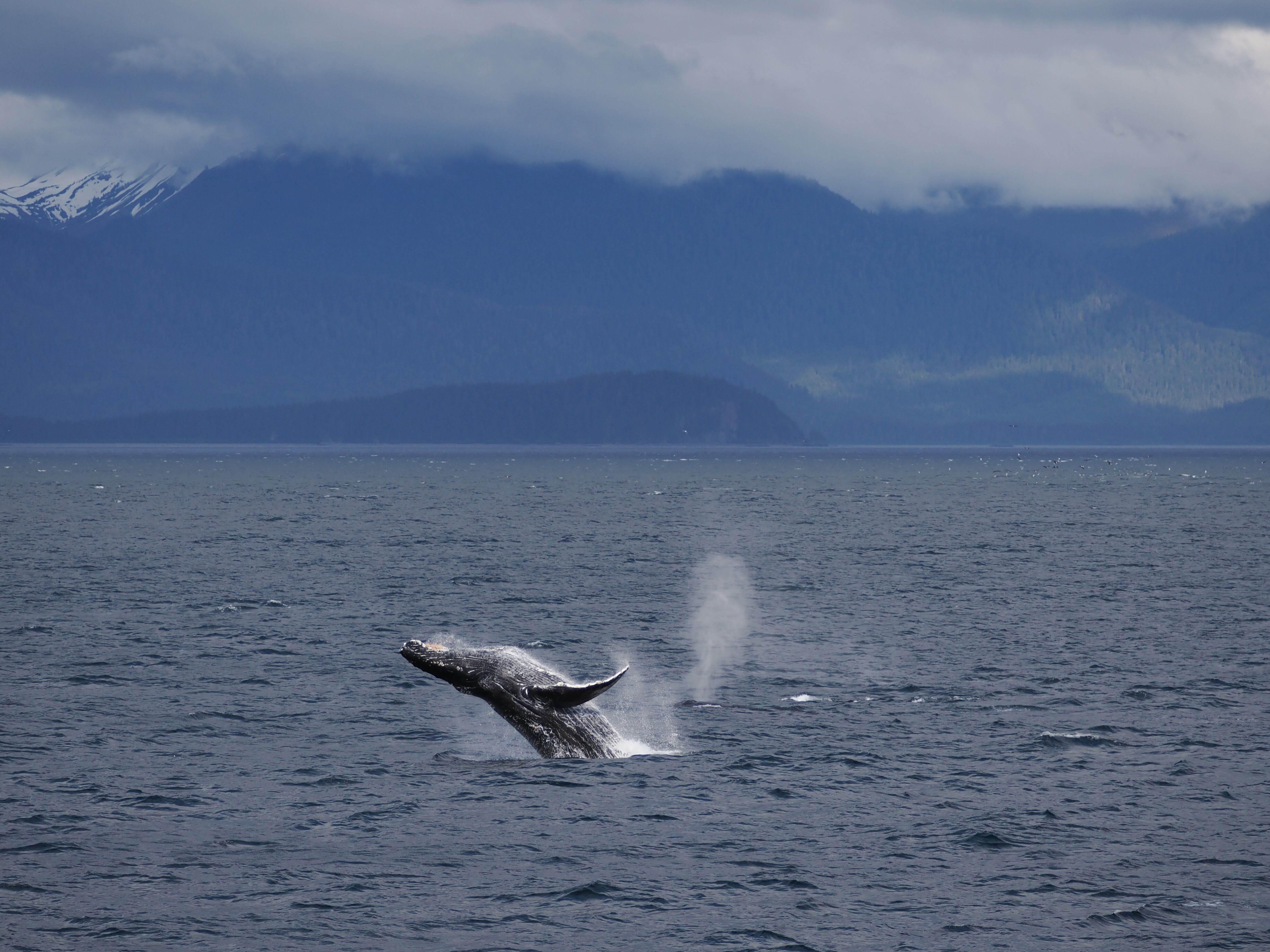 In the afternoon, we made our way out to Icy Strait, where we ended up surrounded by very active humpbacks! We watched as the whales ate, tail slapped, and breached. One guest counted over 60 breaches!