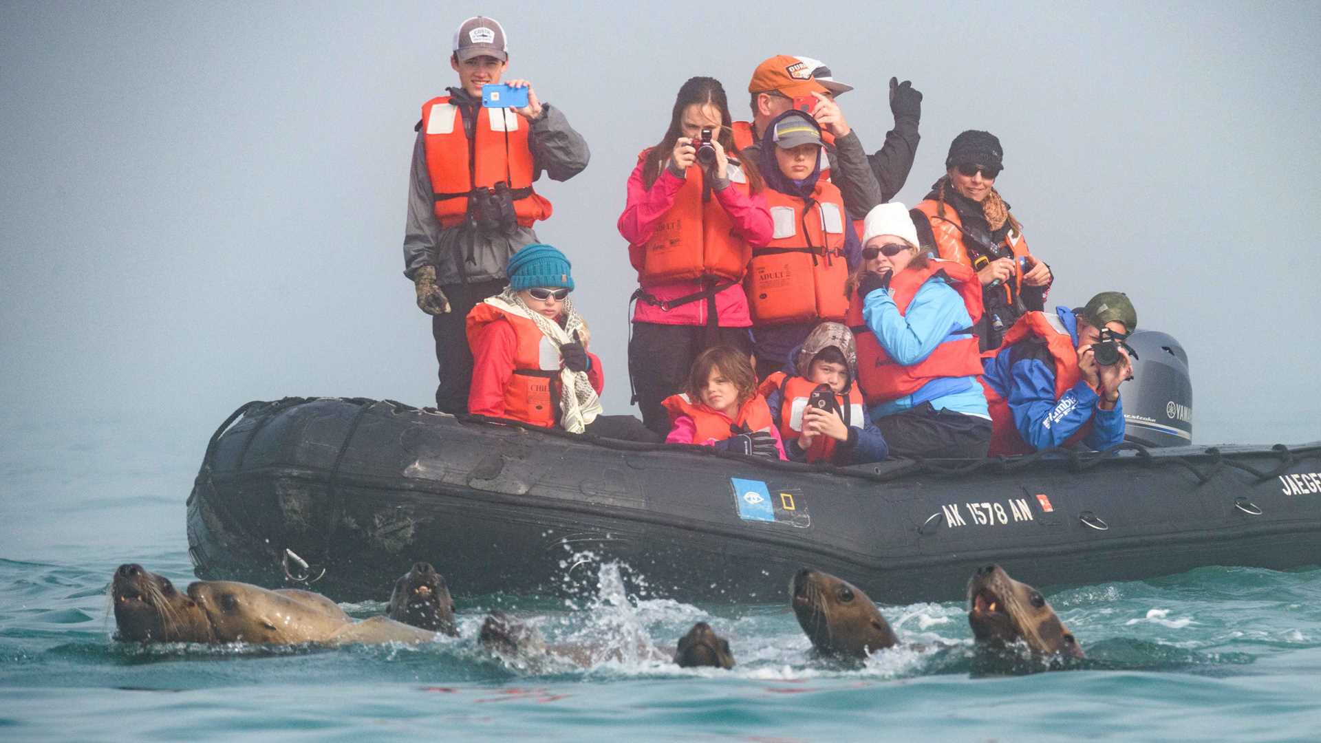 Today, we embarked on a voyage through the breathtaking Endicott Arm, a 30-mile fjord carved by ancient glaciers. As our vessel glided through the jade-green waters, towering granite cliffs rose on either side, with cascading waterfalls fed by melting snowfields. The fjord's serene beauty was punctuated by the occasional splash of harbor seals diving from ice bergs and the distant sight of mountain goats navigating the rugged terrain. Approaching the terminus of the fjord, the awe-inspiring Dawes Glacier came into view. Standing over 500 feet tall and half a mile wide, its icy facade shimmered in hues of blue and white. We boarded Zodiacs to get a closer look, maneuvering through a maze of icebergs, each uniquely sculpted by nature. Suddenly, a thunderous crack echoed as a massive chunk of ice calved from the glacier, crashing into the water below and sending ripples across the fjord—a humbling reminder of nature's power. The journey through Endicott Arm was more than a scenic cruise, it was an intimate encounter with the raw, dynamic forces that shape Alaska's wilderness. The memories of shimmering glaciers, playful seals, and towering cliffs will linger, a testament to the allure of this pristine frontier.