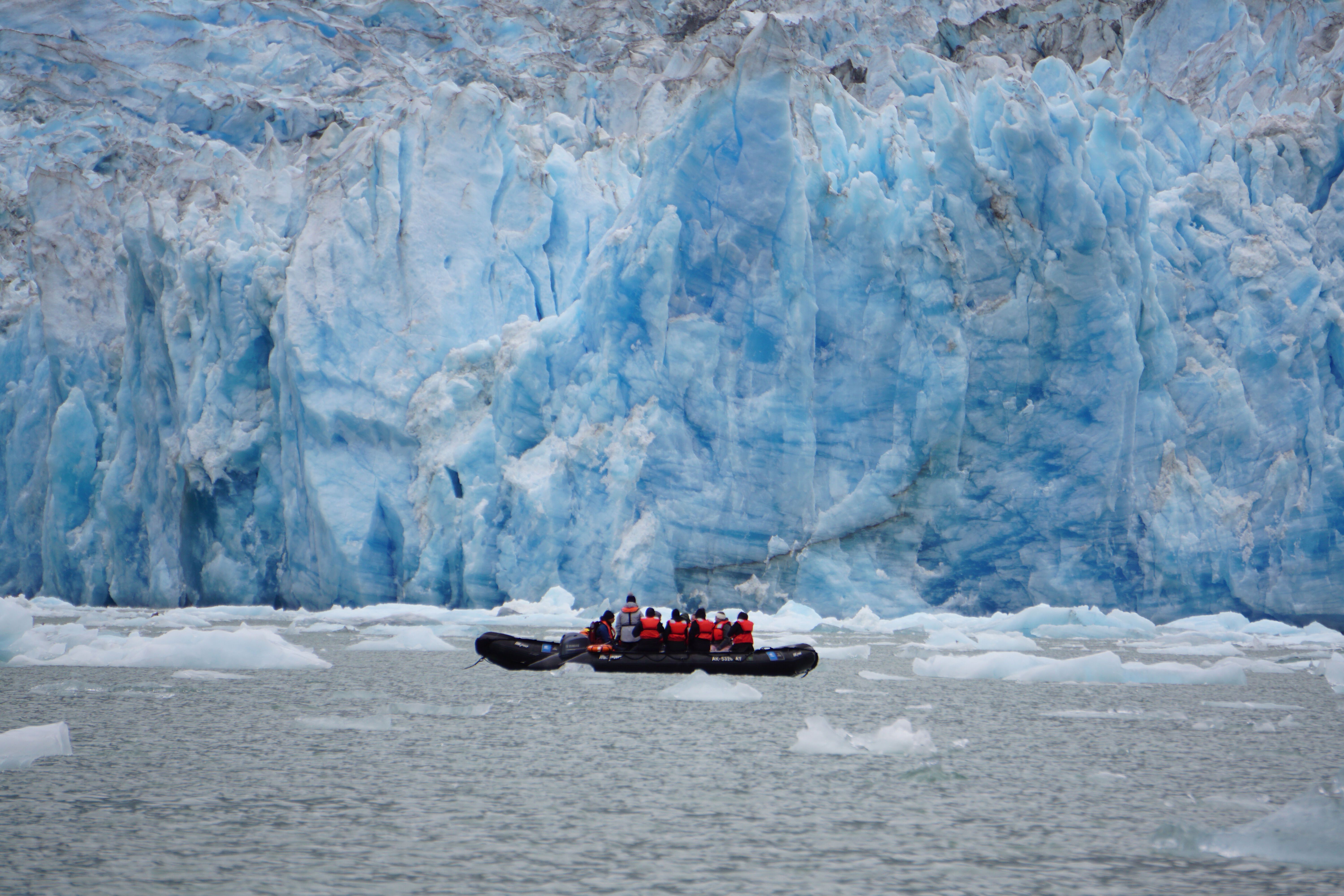 Early morning found us approaching the end of the Inside Passage at the Inian Islands. We boarded Zodiacs to enjoy close and personal experiences with the wildlife. Sea lions were not only hauled out in noisy groups, but also feasting on the migrating salmon in the strong current. Numerous sea otters were spotted, wrapped in the kelp, looking as cute as can be. Huge numbers of birds were spotted in this rich environment, including tufted puffins. Some were on the water while one group displayed on a ledge along the cliff, showing off their amazing tufts and bright orange beaks.