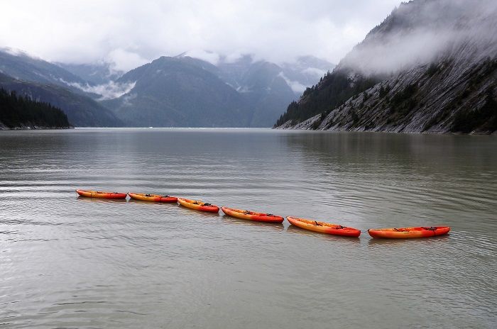 On the last full day of our voyage, we woke in Endicott Arm near the Dawes Glacier. We spent the morning enjoying Zodiac tours to the face of Dawes Glacier and watched multiple calving events. We were also able to spot several harbor seals, waterfalls, and a couple harbor porpoises on the way. After lunch we had the opportunity to participate in a polar plunge. Forty people decided to brave the frigid water for a short swim. Those of us not eager to jump into glacier water were able to watch from the bow. After the polar plunge, we warmed up on board as we started transiting towards Juneau. On the way, we stopped at a beautiful waterfall to once again admire the amazing natural beauty of Alaska. During our farewell recap, we were treated to a quick visit by a humpback whale. We ended our day with a slideshow made up of our favorite photos and memories of an amazing week on board National Geographic Quest .