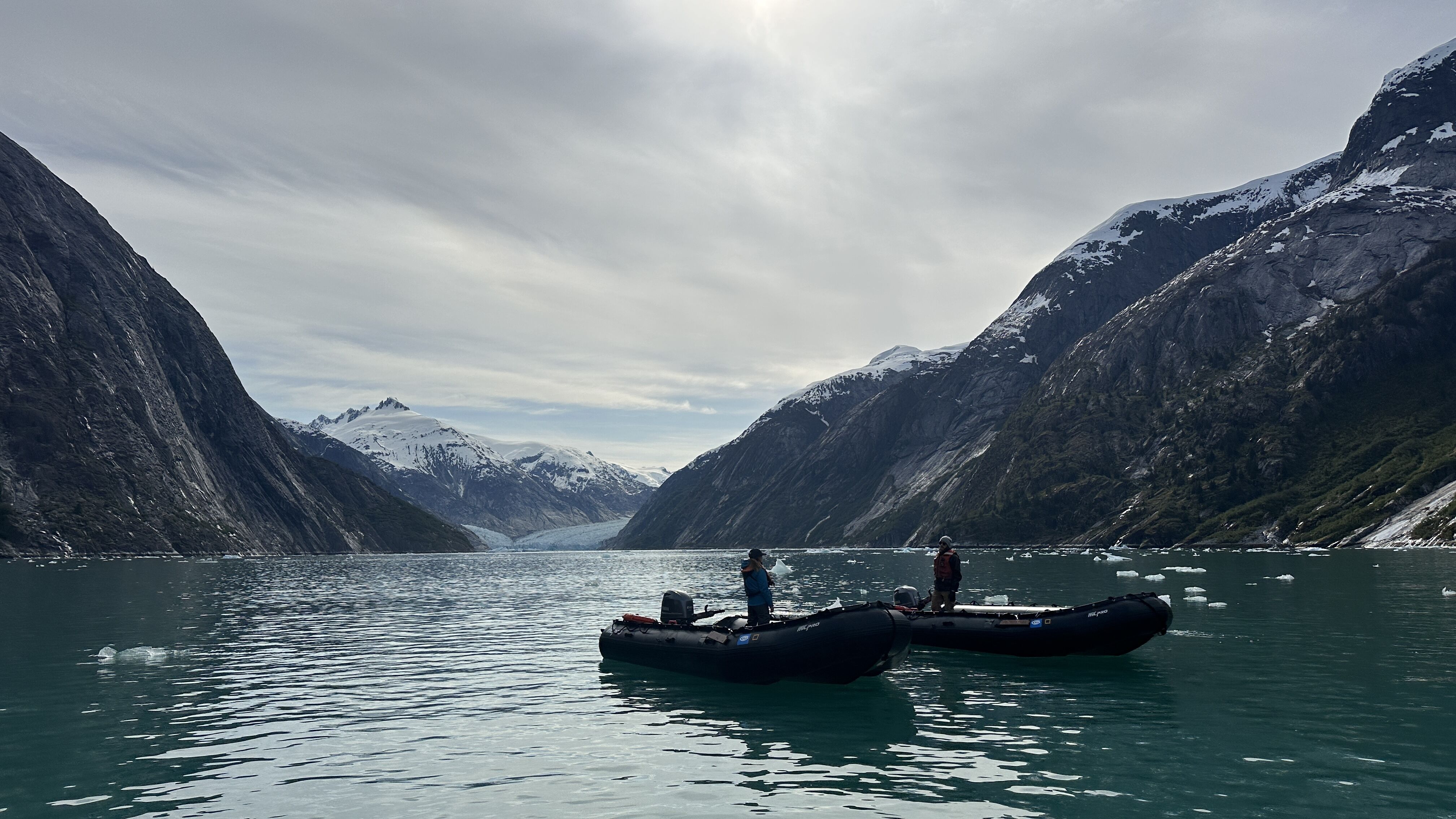 Later in the day, at Port Althorp, seventeen bushwhackers triumphantly emerged after a three-hour-long crawl through mossy understory and boglands. With sticks in their hair, they returned to the ship with stories of perennial bear tracks, deer scat, spring violets, hidden muskegs, deer antlers, and migrating shorebirds.