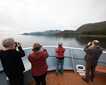 This morning clouds were laying low on the water. The quiet of clouds allows the mind to wonder. We were surrounded by forest-covered islands and mist and then rain. Rain gear and boots, hats and gloves all were donned as we boarded the Zodiacs for our morning outing. We were in a remote wild place with the impending fog. What will we see?
