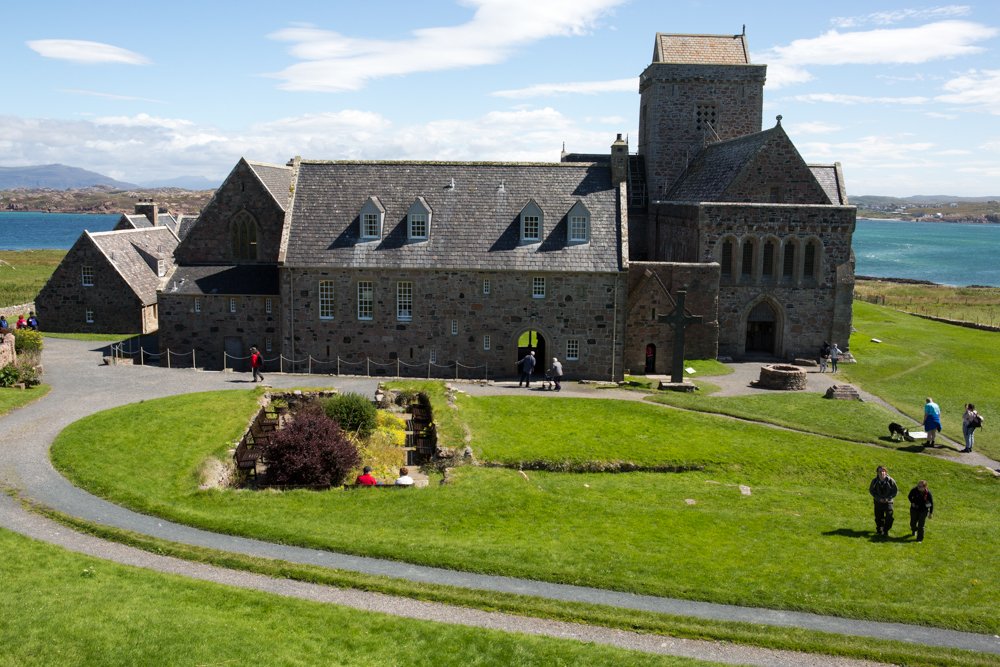 Iona has a notable place in the history of Christianity in northern Europe being the place where the new religion first arrived in Scotland with St Columba in A.D. 563. The remains of his monastic settlement are now only residual bumps in the ground, fascinating ones it must be said, but a more substantial built heritage dating from Norman times provides the rich fare for visitors to engage with ecclesiastical architecture: the pink granite Augustinian nunnery, the former parish church, a Thomas Telford ‘parliamentary’ church dating from 1824 immediately following the clearances on the island, Ronan’s Chapel with its magnificent Romanesque door, and, of course, the restored former Benedictine Abbey itself. Adjacent to the abbey are the famous carved High Crosses, including that of St Martin, in situ since the ninth century. There was time also for some of us to take an invigorating nature walk out to the island’s northern shore before a substantial lunch at the St Columba Hotel.