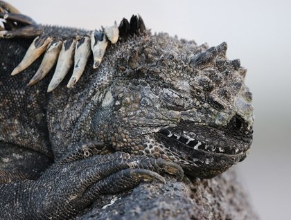 This morning we set off for a wet landing at Urbina Bay on the western shores of Alcedo Volcano, on Isabela Island. This morning’s walk takes us over terrain which has been uplifted from the bottom of the shores of Isabela Island as recently as 1954. In just over half a century, the remains of many subaquatic organisms still show, as they are slowly consumed by a forest of arid zone vegetation. This region is just showing signs of new growth, as the first rains of the wet season have started to transform this area lying on the “rain shadow” of the massive Alcedo Volcano, which lies to the East of us. Blue-footed boobies, brown pelicans and Galapagos penguins fiercely attack a small shoal of fish on the shores of the small black sand beach as we disembark. The weather turns out to be excellent during our morning outing, as it remains partially cloudy, keeping the temperature to remain relatively low and allowing us witness lots of activity by some of the land species, like Galapagos land iguanas, mockingbirds and Darwin finches further inland.