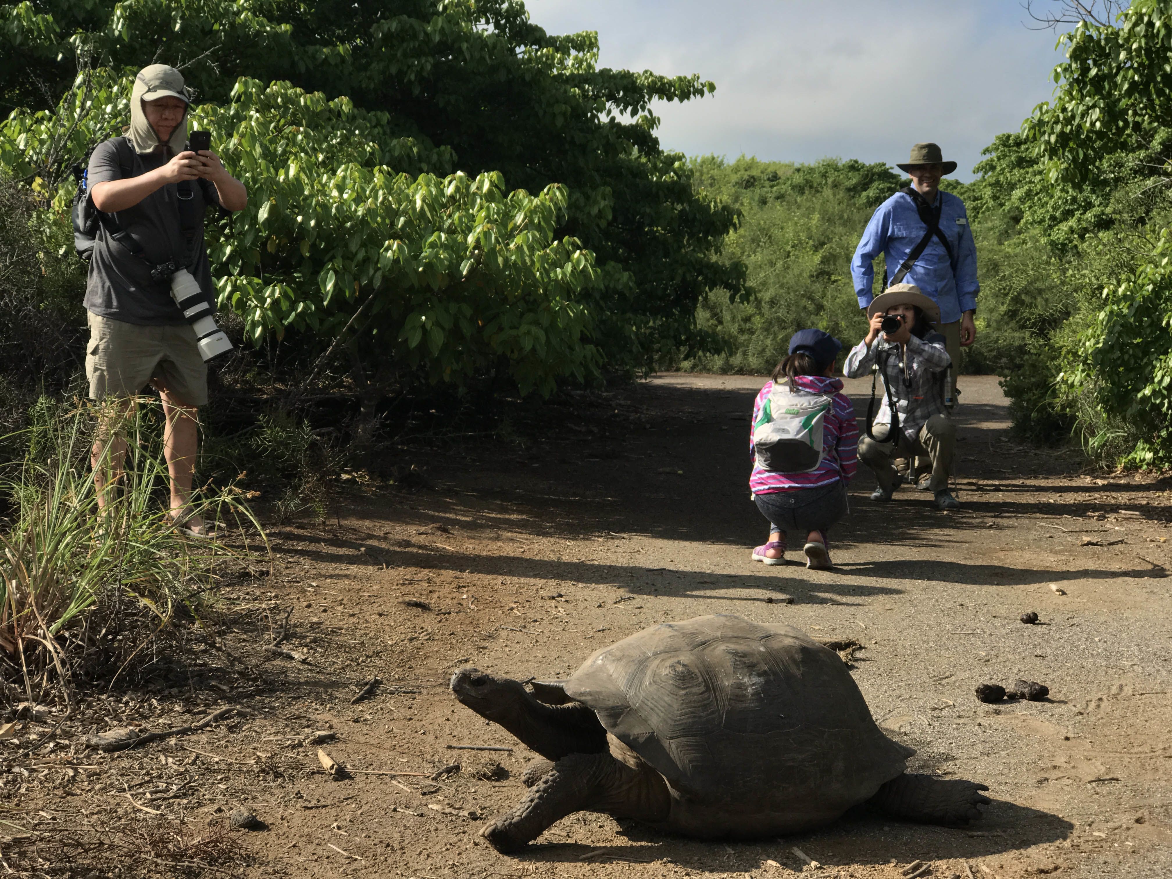 Colder, nutrient-rich waters bring nutrients that fuel primary productivity. Marine algae is very abundant, and this supports a higher biomass of marine herbivores and carnivores. We saw dozens of sea turtles underwater feeding on algae as well as a few penguins and flightless cormorants and many different types of fish. Many of the species we saw are unique to this part of the archipelago, including the sunfish and the harlequin wrasse.