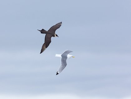 Following lunch and a needed siesta, naturalist Gaby gave us an excellent talk about the human history of Galapagos, and late in the afternoon we headed in to the coast for a dry landing on the black, barren lava shores of the youngest island of Galapagos, Fernandina. We began the afternoon walk on a pahoehoe lava flow and we were immediately amazed and delighted by the incredible variety of wildlife. Marine iguanas rested everywhere on the rocks and we found several baby ones, too. The ever present and entertaining sea lions nursed their pups and snoozed on the sandy beaches. We saw flightless cormorants drying their feathers in preparation for the chilly night ahead and some of us saw a Galapagos constrictor snake that had an extended belly from a recent meal. Galapagos hawks flew overhead and we saw a pair of black and white oyster catchers with bright red bills and a shrill, loud call. What a day! Everyone has experienced the magic of Galapagos today!