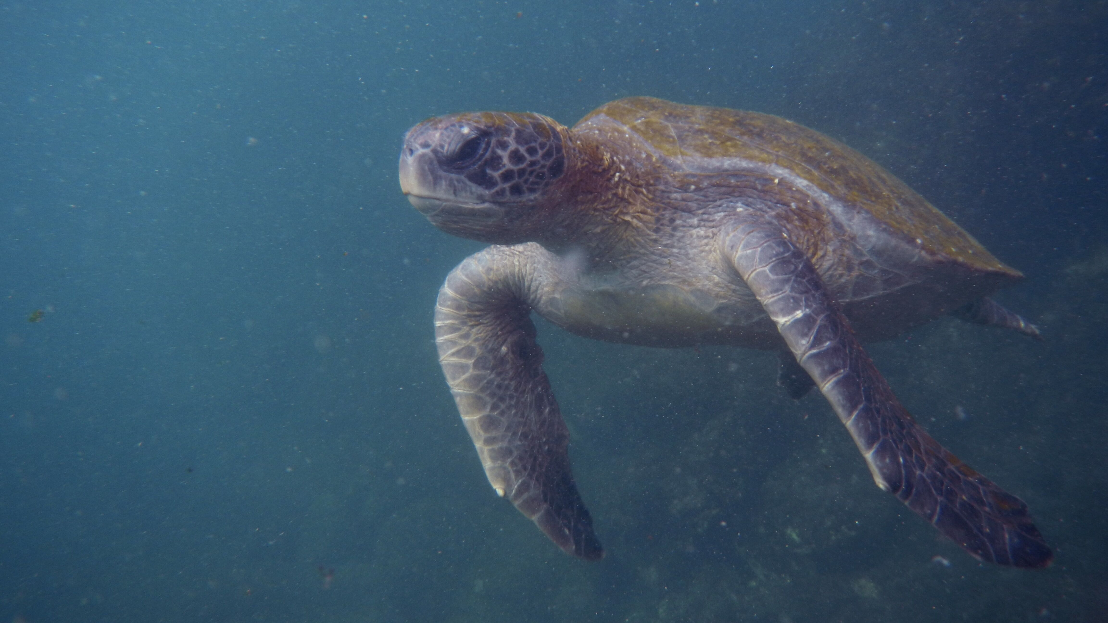 In the morning, guests landed at Punta Espinoza on Fernandina. At the coast, flightless cormorants spread their wings to dry as Galápagos hawks perched alertly in the coastal vegetation. Galápagos sea lions, including suckling pups, lounged on black lava rocks near the water’s edge. Several green sea turtles surfaced close to shore, and the island’s abundant marine iguanas foraged quietly on coral algae. Later, snorkeling in the clear shallows revealed many indifferent green turtles and grazing marine iguanas.