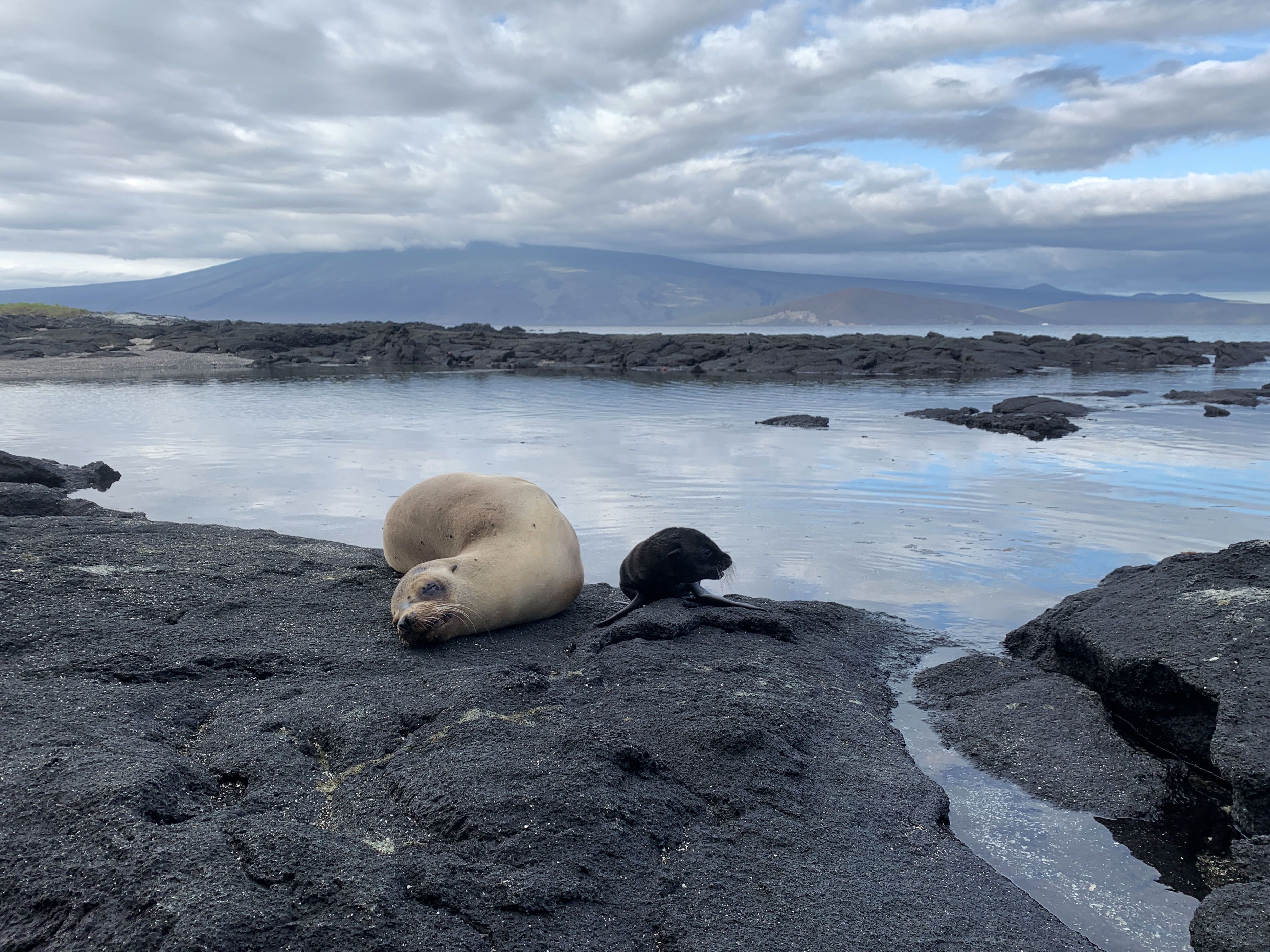 In the afternoon, we reached Fernandina Island, the youngest of all. Here we disembarked for an exploration walk. From the moment we landed until the end, we were surrounded by marine iguanas! This island happens to be a paradise for marine iguanas. But not only for these creatures! We also spotted red crabs decorating the black lava rocks. The best sightings were the newborn sea lions! This is the beginning of the breeding season. From now on, there will be baby sea lions all over the beaches of the Galapagos!