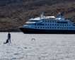 Relatively small and low compared to neighboring Santa Cruz, North Seymour is located to the north of Baltra. The island is dry with predominantly low shrubs, like prickly pear cacti. The incense trees are bare during the dry season. Seabirds like frigatebirds and blue-footed boobies nest on the island, and sea lions rest on the sand when they are not fishing. Land and marine iguanas also live here. Rabida is in the middle of the archipelago and has a striking red sand beach. We observed a small colony of sea lions of all ages resting or nursing. Behind the beach, American flamingos nest in a brackish lagoon. This island is full of contrasts and wildlife that we enjoyed observing during this day of expedition.