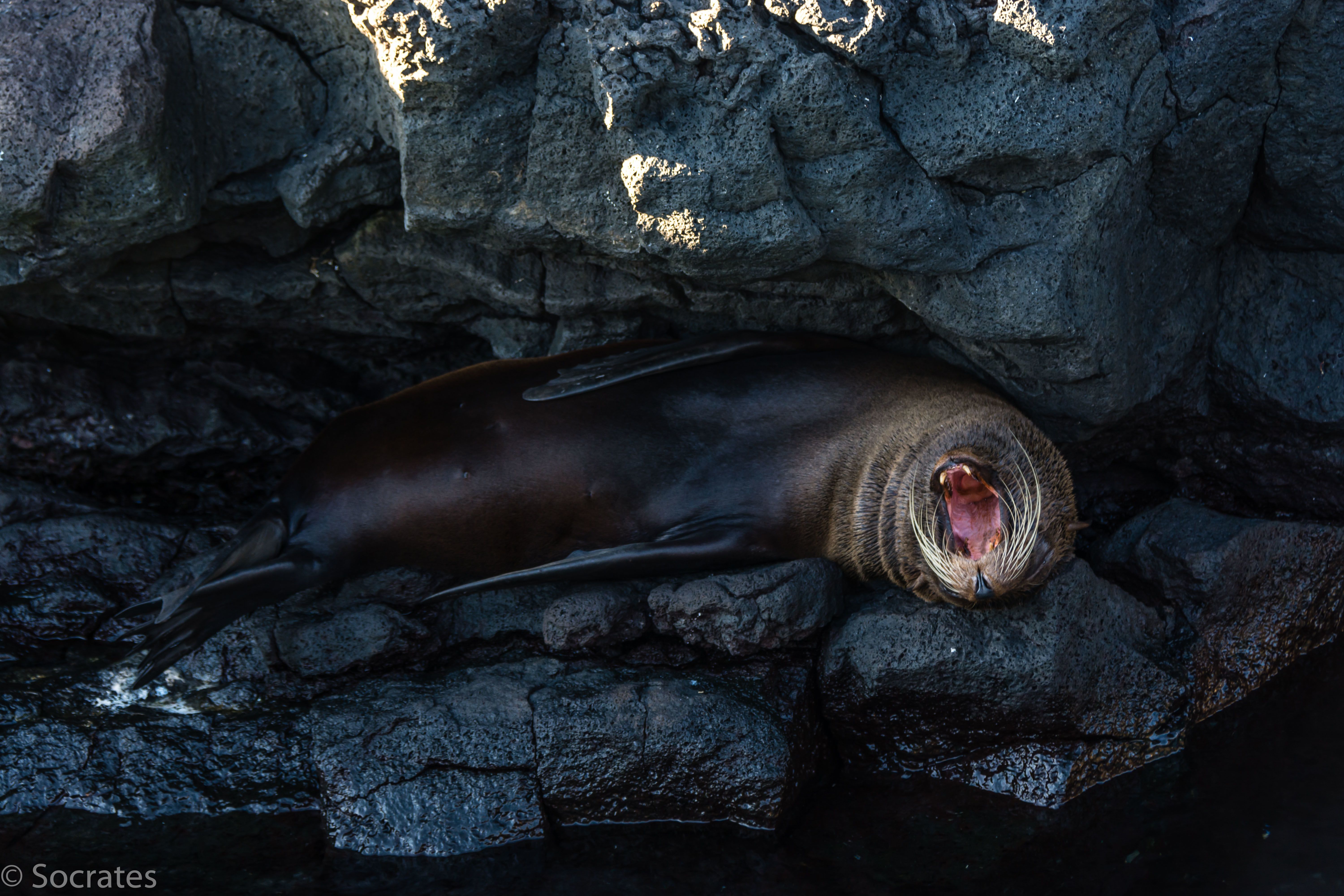 Our day began with the chance to point out a lot of interesting geological features as we enjoyed Zodiac tours along a massive flank of Ecuador Volcano on Punta Vicente Roca. In the afternoon, we took a sunny walk on Punta Espinoza on Fernandina Island. We spotted many iguanas, and a bunch of sea lions hanging around, too.