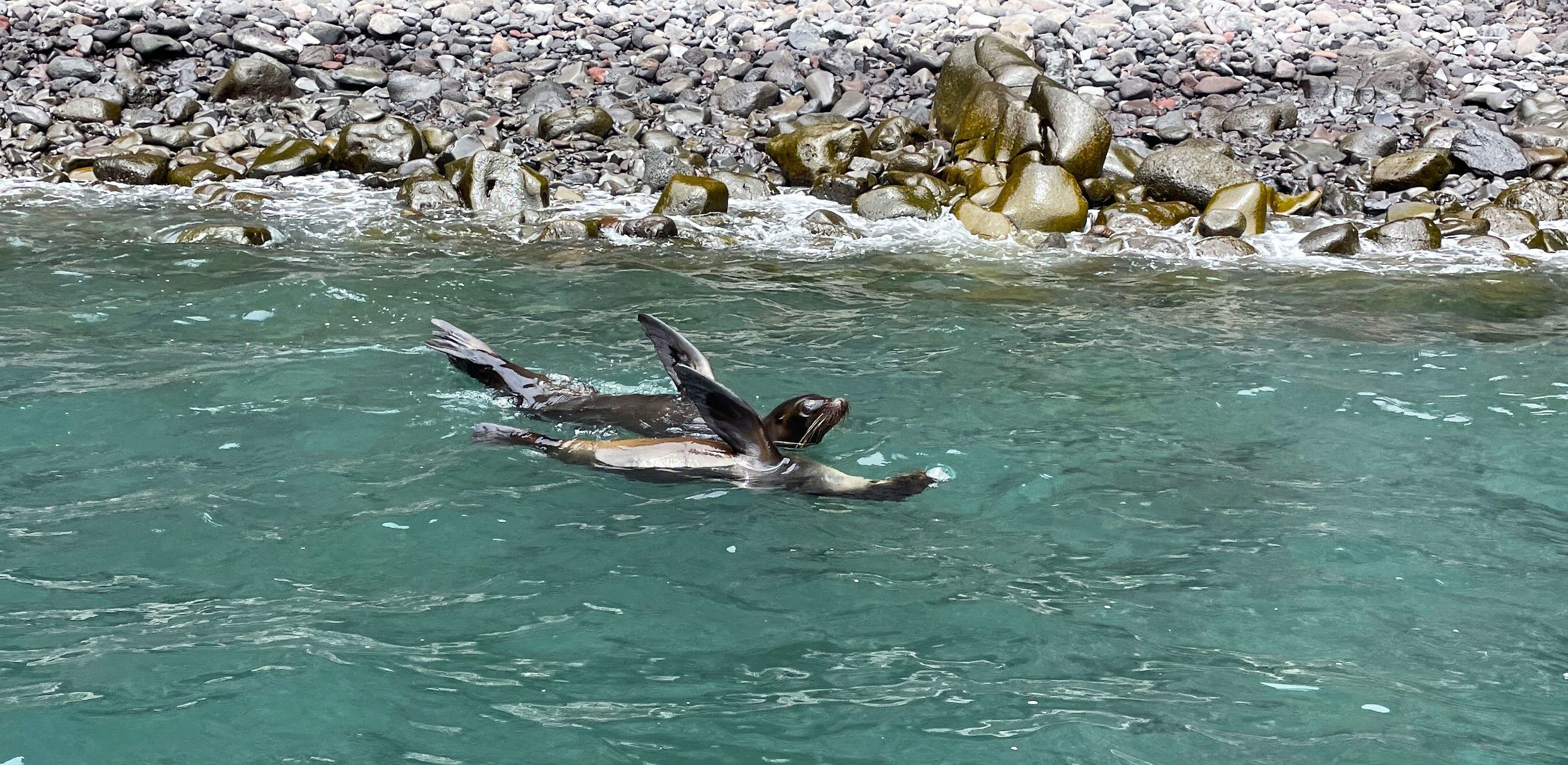 As we continued sailing towards the equator, volcanos on Isabela Island impressed us with their beauty. Later in the morning, we embarked on Zodiacs to explore Punta Vicente Roca. We spotted lots of penguins, marine iguanas, and flightless cormorants. Of course, we also spotted some Galapagos penguins. This area is home to the largest colony of the endemic species.