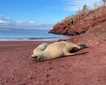 Our day began at Urbina Bay on Isabela Island. As we crested the dunes of the black beach, not ten paces into our hike, we bumped into an Alcedo giant tortoise walking towards us. We watched as he turned into the bush, leaving the trail clear for us to continue with our hike. Not a bad start to our day! The rest of the hike continued in the same vein with more tortoises, large colorful land iguanas, and finches and mockingbirds flitting around the dense vegetation. Also of note were the yellow Cordia bushes which were in full bloom. Some of us even enjoyed a dip in the ocean before returning on board.