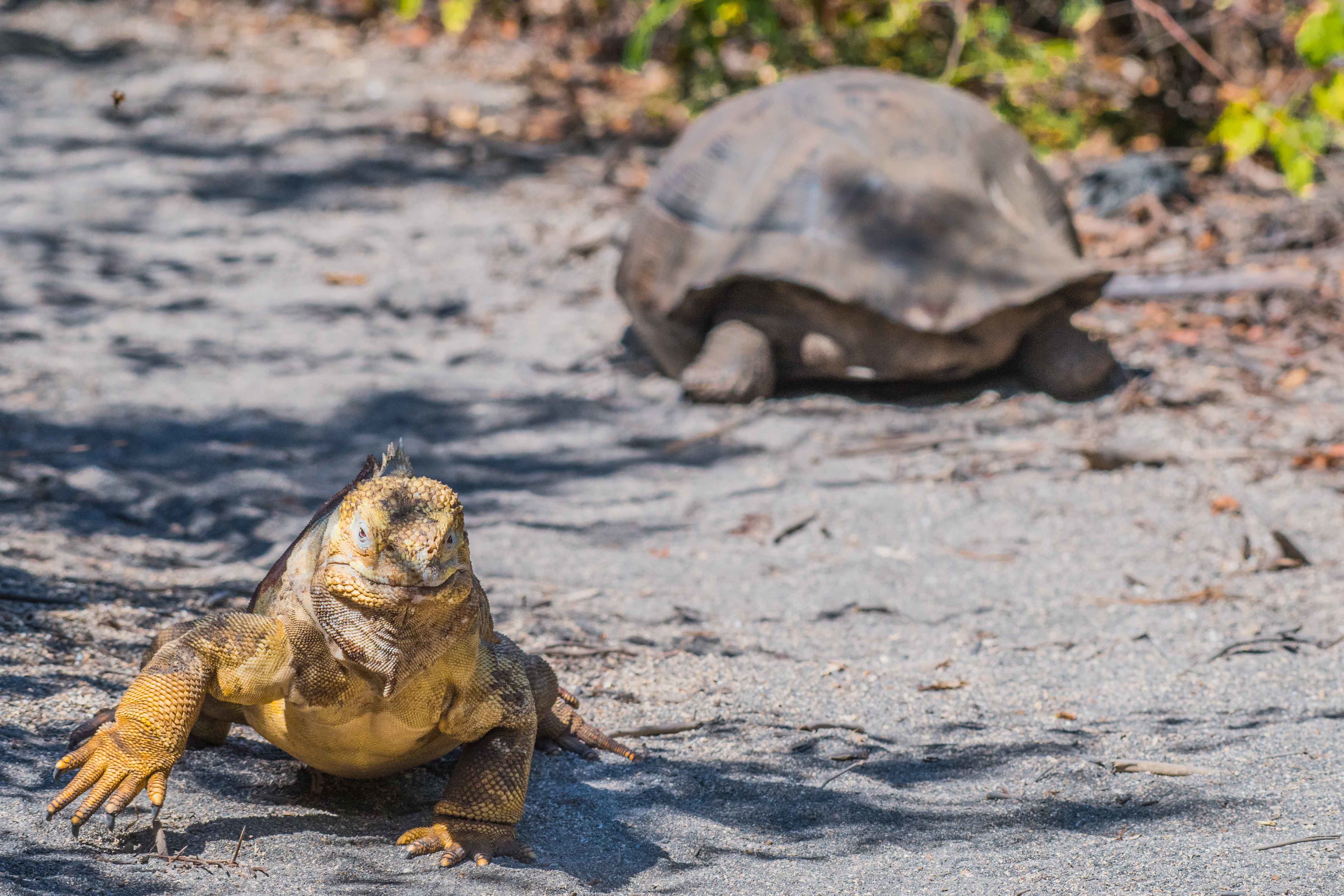 Today we visited two areas of Isabela, the largest island of the Galapagos. To start our day, we hiked to an uplifted area containing a manzanillo and palo santo forest where we saw our first giant tortoise of the week in the wild. We also spotted several land iguanas, finches, warblers and mockingbirds. At the end of our active hike, we relaxed on a nearby beach, enjoyed the landscape, and had many photographic opportunities. On our return to National Geographic Islander, some guests jumped out into the waters of Urbina Bay for a swim.