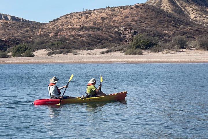 What a fantastic way to kick off 2025 aboard National Geographic Venture. Today we awoke anchored at Puerto Los Gatos and as the sun rose, everyone knew we were in for a treat as we saw the light shining on the red rocks of the petrified sandstone cliffs ashore. We shuttled ashore where guests chose from a variety of activities including kayaking, stand up paddleboarding, and hikes ranging from casual to strenuous. Back on board, we made a short move over lunch to Isla San Jose where we anchored the ship at a protected beach called Playa Encantada and went ashore to explore the arroyo and slot canyon. We beach combed the area, also investigating various bones from trigger fish, porcupine fish, moray eels and even feral goats. After the hikes, guests were amazed at the incredible service from our hotel team when they set up a beach BBQ, campfire, and even a s’more station!! To top it off, one of the guests, Elizabeth, put on a three-song show showcasing her incredible voice. Back on board, we ended the day with an evening of board games, stargazing with Sharyn and Tim, and were even treated to an amazing show of feeding fish off the stern. Wow, this trip is only 2/3 of the way through and we have had so many incredible experiences!!! Let’s see what tomorrow brings.