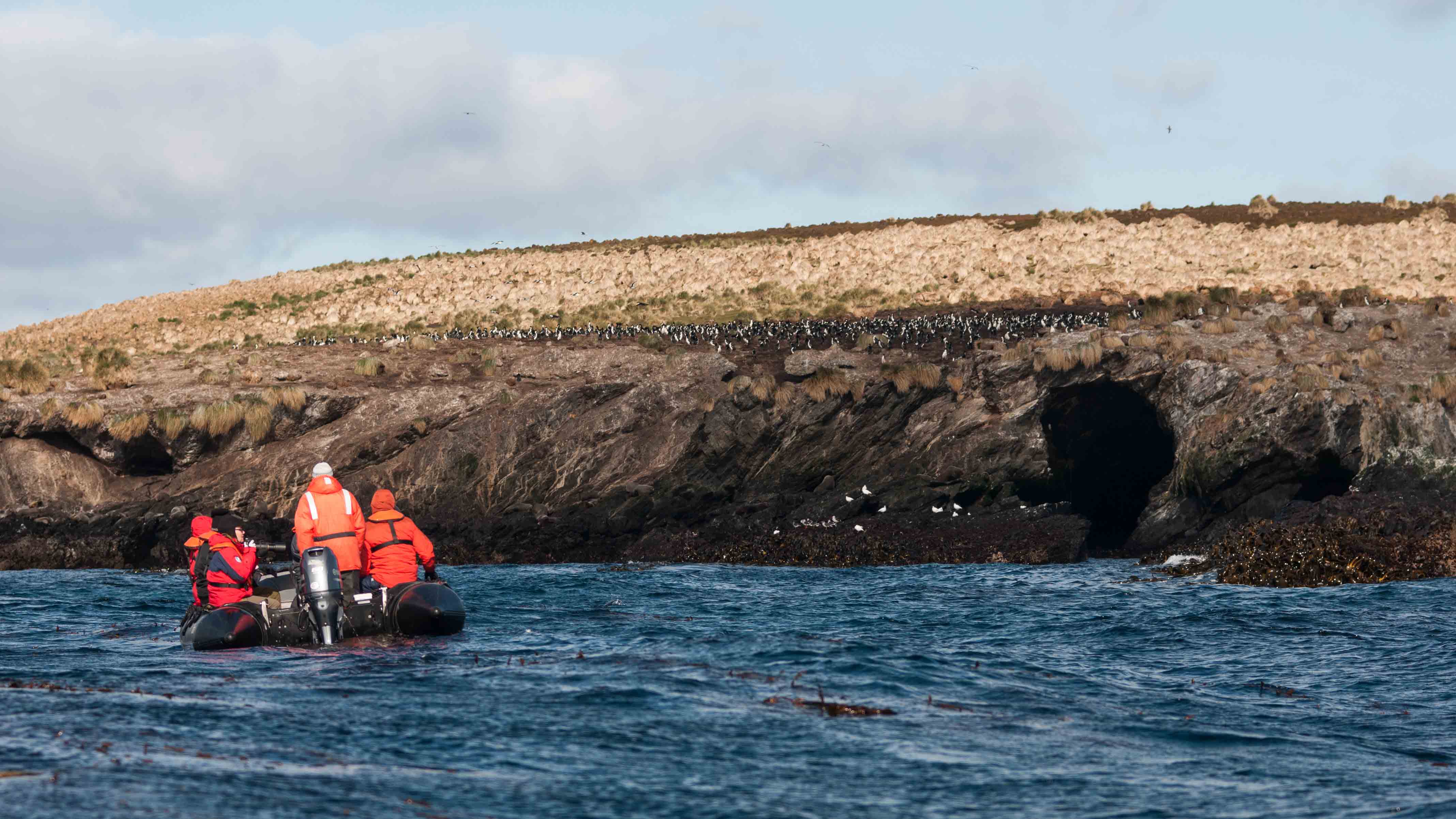 Our final day of this two-week expedition was a fitting end to our explorations of Patagonia and Isla de Los Estados (Staten Island). So few people have visited Staten Island that every outing was a new adventure, with today serving as the perfect reminder as to why this place is so special. We spent the entire morning cruising the shores of Isla Observatorio, teeming with thousands of seabirds and pinnipeds; every little nook of kelp-covered shoreline and ridge was packed with life. In the afternoon, we set anchor at Puerto Roca on the main island and set out for a leisurely stroll along the fine, sandy beach, taking time to reflect and soak in the magnificent scenery.