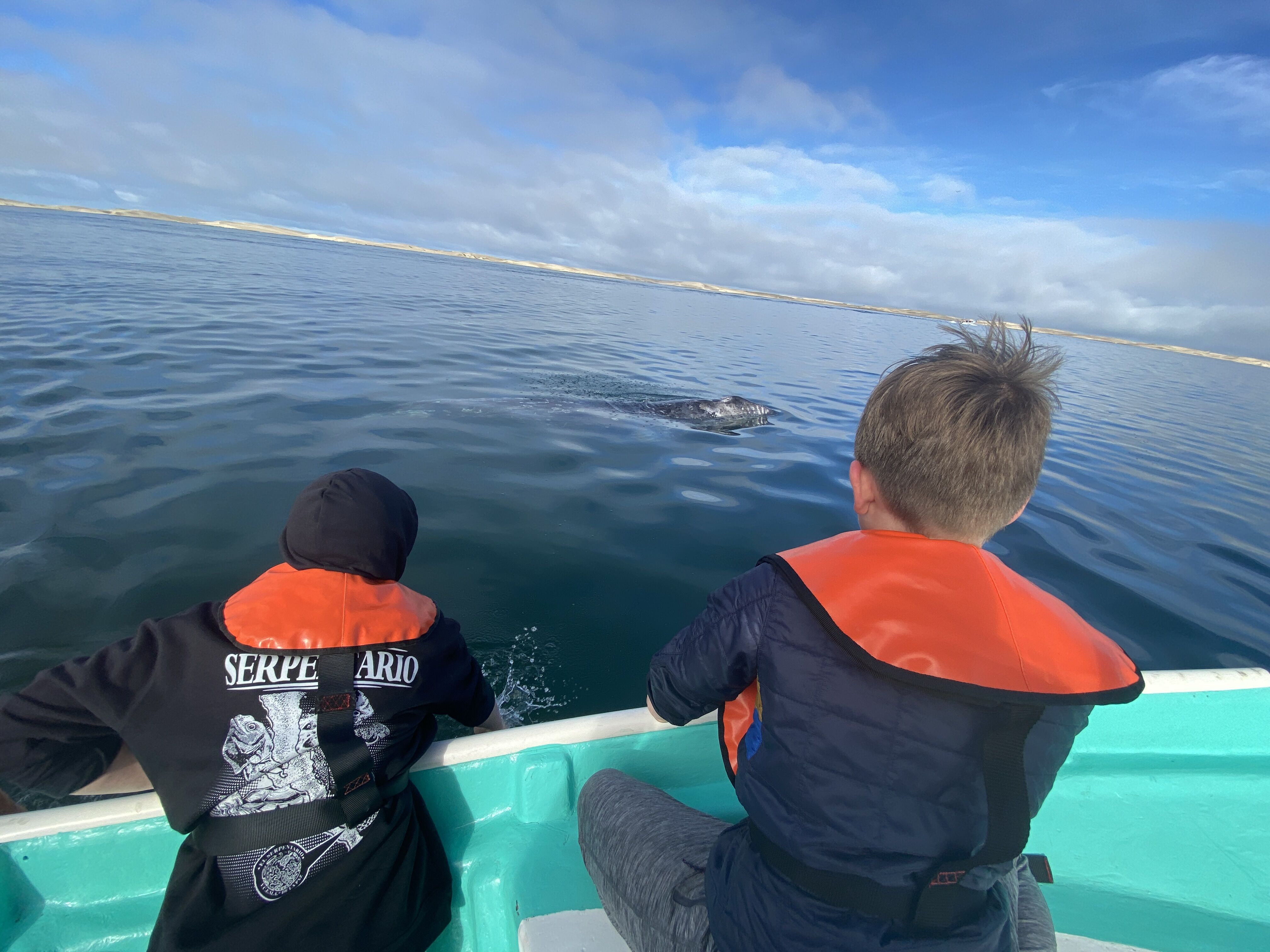 We woke up to glassy waters and the sun rising over Isla del Carmen, which is where our morning activities took place. We strolled through a dry arroyo. To get there, we had to traverse through a marshy mangrove patch. We also kayaked and beachcombed for shells. Some guests went for a refreshing dip in the lovely waters of the bay. The weather was wonderful. We then departed the bay and returned to the ship for lunch, complete with a surprise ice cream sundae bar on the sundeck. What a treat! We spent the afternoon cruising the area around Isla del Carmen. We happened upon humpback whales, mobula rays, and sharks leaping out of the water. A classic day on the water in the Gulf of California!