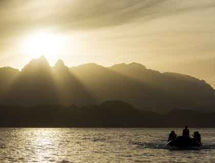 Another magical day in Baja California unfolds as the National Geographic Sea Lion approaches Isla San Esteban just after sunrise. The colorful layers of folded, faulted, and contorted rock exposed in the sea cliffs glow in the morning light. A fresh breeze is blowing from the north, so we tuck in close to the island for protection. Conditions are perfect for going ashore to explore.