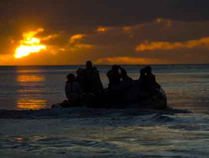 The National Geographic Sea Bird set anchor in the lee of San Pedro Martir and we headed out for small boat cruises along the shoreline. The barks of sea lions echoed in the natural amphitheaters along the coast. Younger pups played in the water around us, flying through the water below us, abruptly turning, leaping, then stopping to sneak peeks towards us with heads stretched high above the water.