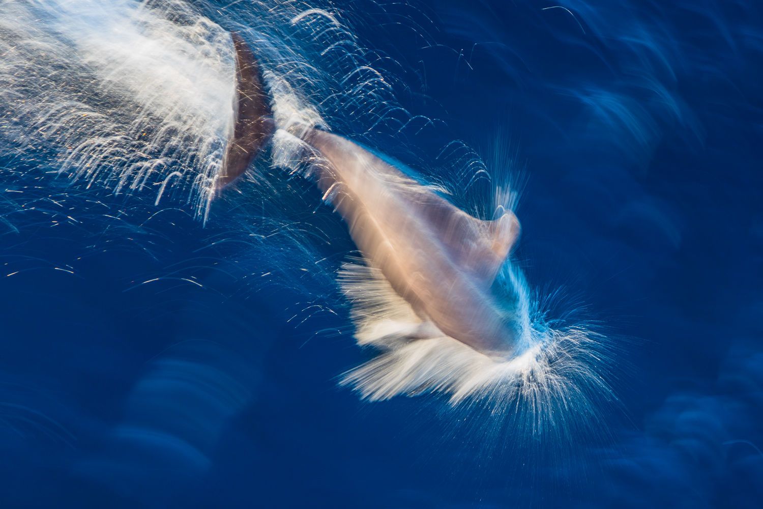 We saw all the classic behaviors: spyhopping, breaching, juveniles rolling around and playing in the shallow shoals, swimming around and under our pangas, a mother who was reluctant to let her small calf get too close, and best of all, a friendly whale who avidly solicited our attention. Shouts of joy echoed across the bay. In addition to the petting, some of us also experienced the lifetime opportunity that is whale breath, to various degrees of appreciation! So many whales! The sheer number of blows all around us was nearly sensory overload. Shouts of Over there! Over here! Off the bow! Off the stern! Spyhopping at 11 o’clock! rippled between our boats. Watch that breach at 3 o’clock! resulted in glancing this way and that, as if we were watching a spirited game of ice hockey. An added touch to the morning’s spectating was the brief presence of bottlenose dolphins and a solitary sea lion.