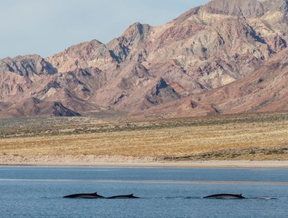 A brilliant sunrise welcomed the day just offshore from Isla Santa Catalina, our destination for the morning. A broad beach known as Tursiops, named for the genus of bottlenose dolphins, separated the open bay from a colorful desert landscape. Hikers entered a dry creek drainage, or arroyo, for walks of differing lengths to search for photo opportunities, birds, reptiles, and the giant barrel cactus, found only here and several other islands in the Sea of Cortez. Yellow blossoms covered the green-trunked palo verde trees, and creamy flowers decorated the towering columns of cardon cacti. Prickly poppy petals looked like fragile tissue paper in harsh contrast to the coarse spiny surface of the rotund barrel cacti. Cardinals, black-throated sparrows, loggerhead shrikes, and white-winged doves caught our attention. A pair of ash-throated flycatchers guarded their nest, which was a hole in a cardon excavated by gila woodpeckers in the past.