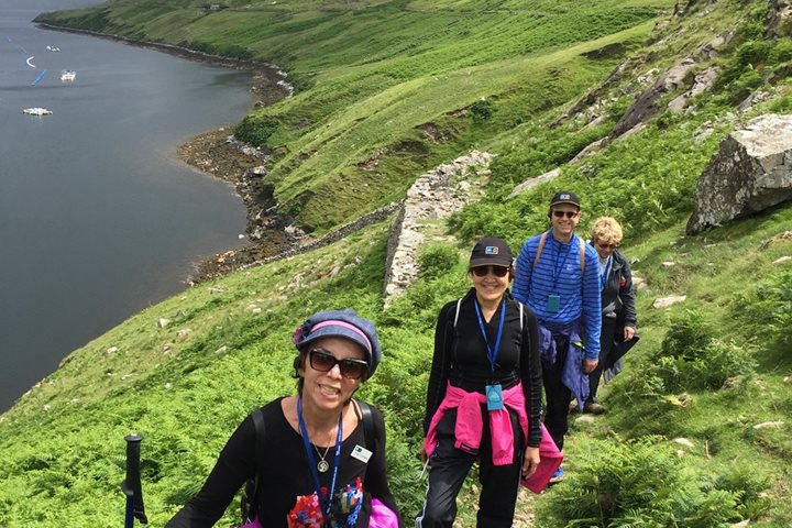 Our morning excursion on Inis Mor, the largest of the islands, saw us following local guides to make an ascent of Dun Aonghasa, one of the most magnificently situated of any of the Irish National Monuments. We were impressed by the karst landscape, limestone klints and grykes that had been fashioned into a patchwork quilt of walled enclosure that had supported an island population with pasture and crops. Archaeological work at Dun Aonghasa has revealed multiple layers of settlement going back into prehistoric times. The walled enclosure is traditionally classified as an Iron Age hill-fort, with an impressive chevaux de frise feature that here seems to have been constructed more as a mark of status than as a defensive feature. Other interpretations of an intriguing site suggest a ritual use of space, a temple rather than a fort.