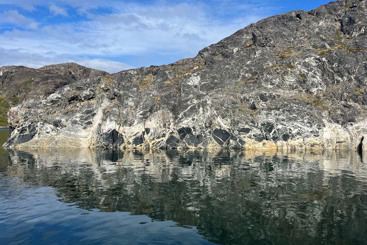 The sun greeted us this morning as we made our way into yet another of the spectacular fjords of West Greenland. Our last outing for this expedition was upon us and Bud, our Expedition Leader, wanted to give our guests their choice of excursion, between hiking, Zodiac cruising, or kayaking on the beautifully calm water.