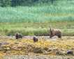 A scrumptious lunch of chili later, we pulled into Pavlov Harbor in Freshwater Bay. A mother coastal brown bear and her two young cubs grazed on grasses along the shore. From our inflatable fleet we watched them meander down the beach, walking along logs, and even taking a quick swim before they took their exit into the shadows of the forest. Harbor seals darted through the deep green water after salmon below Pavlov Falls, and eagles called from treetops as we cruised the shoreline.