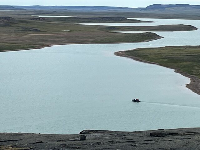 National Geographic Resolution navigated through the night from Cambridge Bay, Nunavut to Johansen Bay, Nunavut, which is located on the southern end of Victoria Island. A spectacular, post-glaciated landscape was laid out before us and it was perfect for our morning activities that included short, medium, and long hikes, and Zodiac cruises. Under blue skies and in balmy temperatures, those on Zodiacs enjoyed exploring deep into marine inlets and riverine systems that drain waters derived from snowmelt and lakes in higher elevations.