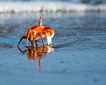 We arrived in Djúpivogur in the misty morning light. As always, we were accompanied by our loyal companions the fulmars—beautiful gray and white birds that look somewhat like gulls, but are in fact related to albatrosses and other tubenoses. We tied up in a snug, quiet harbor and prepared for our big adventure ashore. On the quay was a line of granite eggs on pedestals—beautiful work of a local artist highlighting the shapes of the eggs of different Icelandic bird species.