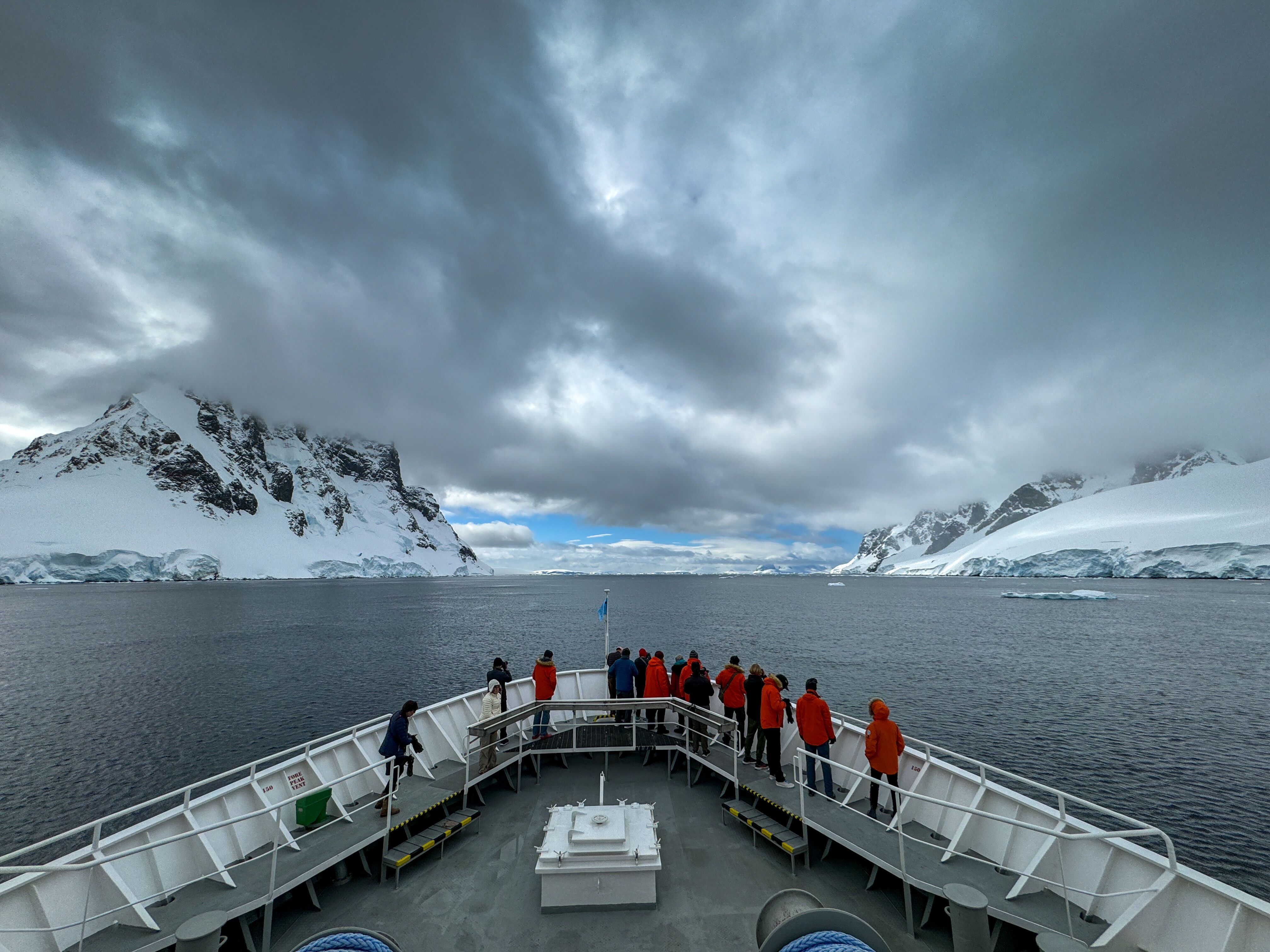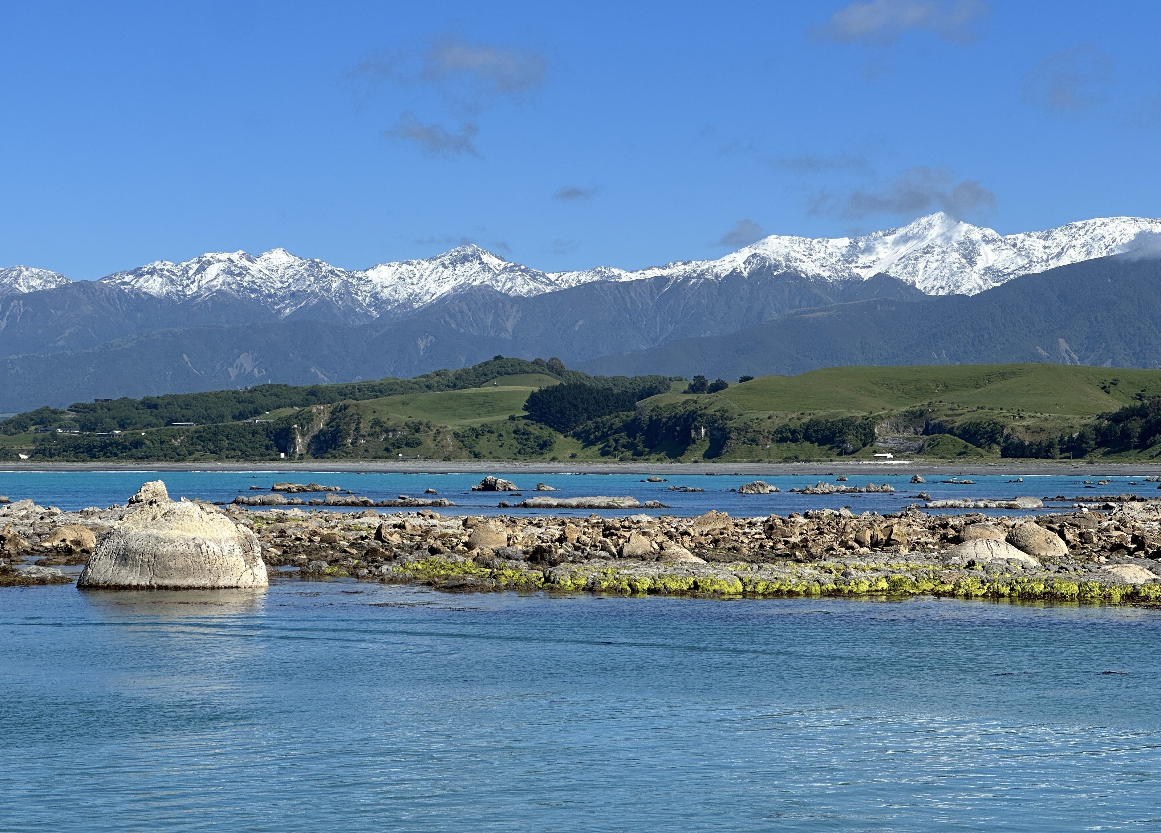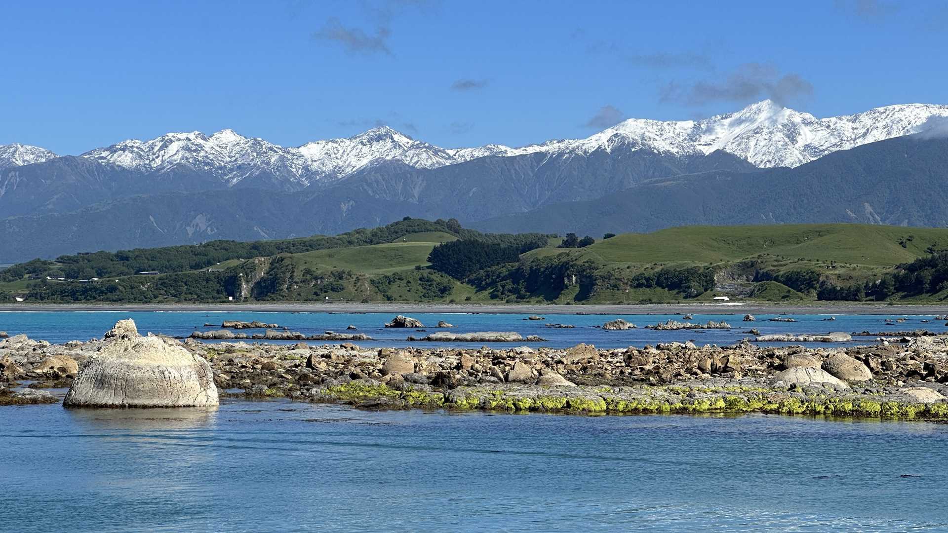 A gorgeous, sunny day on the rocky coast with the rolling hills and stunning snowcapped mountains of Kaikoura. National Geographic Orion was positioned just offshore to allow everyone to hop in a Zodiac and head to town for a tour to see magnificent albatrosses or a whale watching adventure.