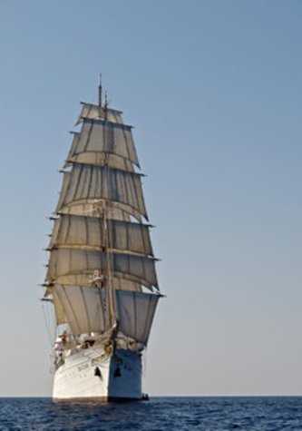 On the way to the birthplace of the Olympics we woke to a beautiful morning in the Ionian Sea. It began with a surprising gentle breeze when there had been none forecast. Sea Cloud set sails unexpectedly during breakfast, and by 0930 we were thrilled with the unique experience of cruising the Zodiacs around Sea Cloud in her full glory with almost all sails set. It was a vision of the past to see her like that in the middle of the sea.