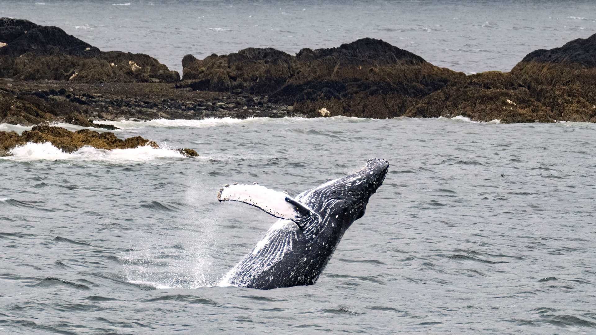 We enjoyed a beautiful morning of hikes and kayaking at Kelp Bay on Baranof Island! Several hiking groups trekked through the muddy forest to a stunning lakeside view, replete with birdsong and banana slugs! Kayakers enjoyed exploring the protected bay. After pulling anchor and heading towards Chatham Strait, we were interrupted by a sighting of a young breaching humpback whale! The whale breached over thirty times with mom nearby, and it was such a treat! Today was another lovely day in Southeast Alaska!