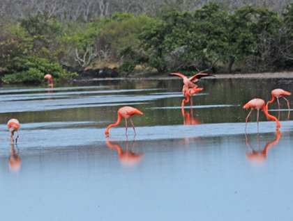 As we prepared for our hikes in the Tongass National Forest, we finally received the rain that all of us had packed for! It was a welcomed relief from the exceptionally hot and dry conditions of the last two days, and it provided a perfect backdrop for our hike through this amazing old-growth forest. A large group of energetic, fast-moving aerobic hikers followed by two just slightly slower groups explored the forest and the rich salmon stream. All hikers made the trek to Lake Eva and along the way saw plenty of bear signs. A red squirrel sat near the trail on the stump of a tree munching, corn-cob style, on the cone of a Sitka Spruce. The detritus of his many other meals was piled along the base of the tree. A beaver too had been at work, nearly gnawing through a small tree along the edge of Lake Eva. A large school of sockeye salmon were observed in the shallow waters above a small waterfall. All were adjusting to the new fresh-water environment having just returned from the sea to their natal stream. With a light, but steady rain falling through the forest canopy, we began to feel the true environment of this temperate rain forest and could better appreciate these amazing old-growth spruce and hemlock trees towering above us.