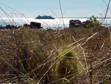 After lunch we had an expedition afternoon with Zodiacs taking guests to the secluded white sandy beaches of Tranquil Bay and Koolama Bay. Tranquil Bay has a lagoon with a magnificent sandstone escarpment backdrop while the beautiful Koolama Bay is the famous site where the Koolama made its way after being attacked by the Japanese during World War II. Many animal tracks were identified in the sand and a Dingo was spotted at top of the escarpment looking and wondering at all the people in its territory. All in all it was a peaceful and relaxing end to a totally awesome day of adventure and exploration.