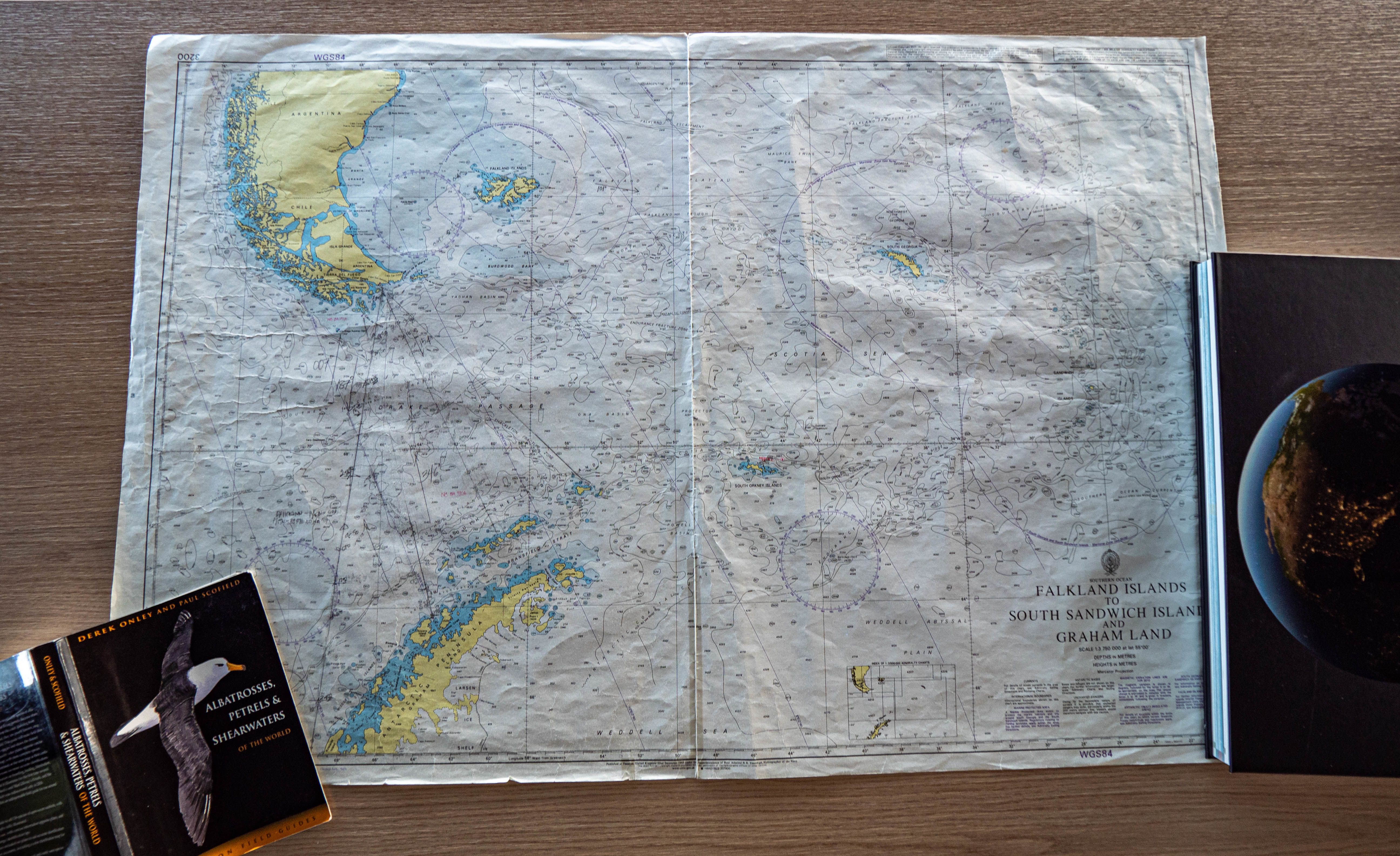 Today we are anchored in King Haakon Bay. Where is that? I would say, “It is on the southwest side of South Georgia.” However, since South Georgia is shaped like a comma, King Haakon Bay is north of most of the island. Anyway, it is a beautiful morning: cloudy, moody, and not really cold.  We are deep into the bay at a site named Peggotty Bluff (or Camp), named for the Peggotty family who lived in an overturned boat … as written in David Copperfield.