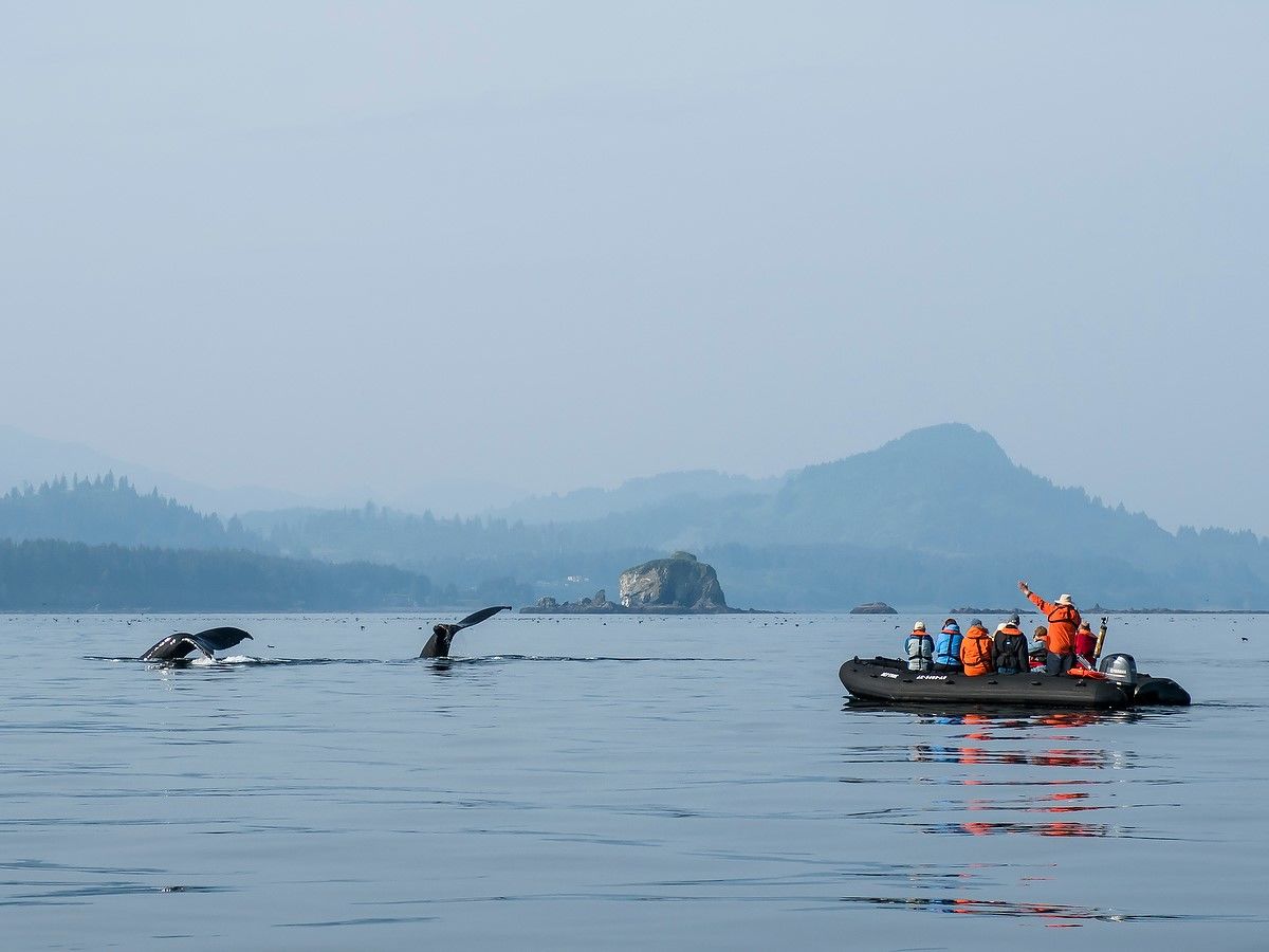 All on board National Geographic Orion were excited this morning as the ship let go our anchor in Kalsin Bay on Kodiak Island. Deploying our fleet of expedition watercraft, we quickly fanned out to explore the myriad reefs and islets that are to be found in this bay. Our efforts were rewarded with sightings of sea otters, harbor seals, and a plethora of different sea birds. The morning highlight was undoubtedly a trio of humpback whales, subsurface feeding in the mirror flat waters of the bay.