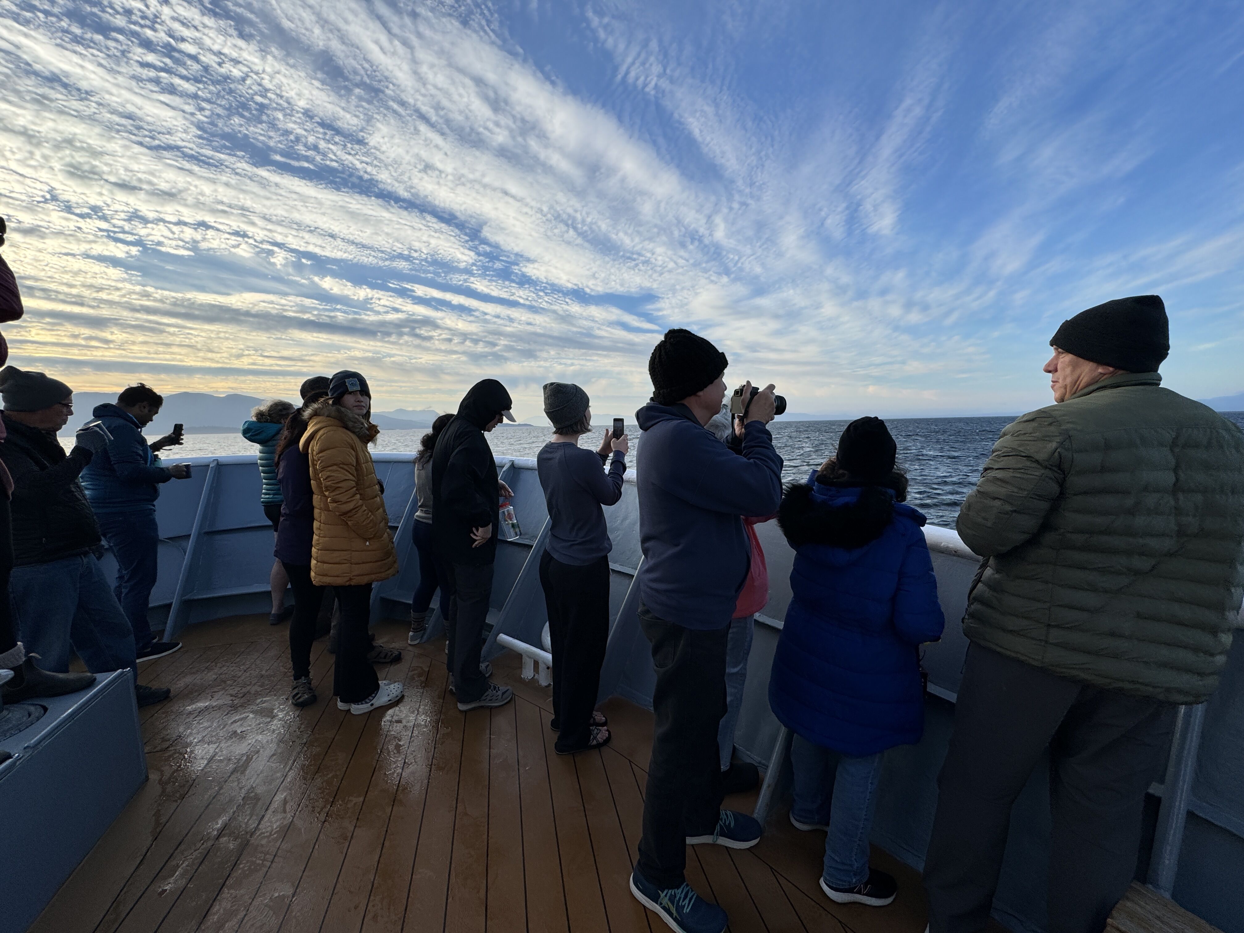 In the afternoon we snorkeled and enjoyed excursions in the glass bottom Zodiac beneath the cliffs of a nearby karst tower island before returning to the ship for a beautiful sunset and a fantastic barbecue on the sun deck.