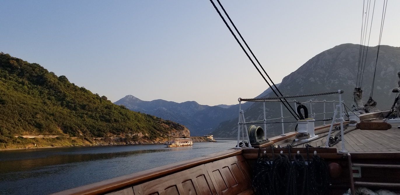 In early dawn, Sea Cloud sailed into Boka Bay, picked up the Montenegran pilot and navigated through the narrows to reach the inner portion of the bay in the beautiful light of sunrise. The captain brought the ship alongside the walls of the old town of Kotor, and once the ship was cleared, we departed by coaches, heading to the charming town of Perast. There we quickly transferred to little boats to shuttle out to the tiny island of our Lady of the Rock, a shrine set atop an artificial island, made over the course of 150 years as local fishermen dropped rocks from their boats to build up a formerly submerged reef. After our tour of the chapel and guardhouse museum, we once again boarded boats to bring us back to Perast where we visited the St. Nicolaus Church, enjoyed a cold drink at a waterfront café, and then made a short visit to the town’s small but elegant nautical museum.