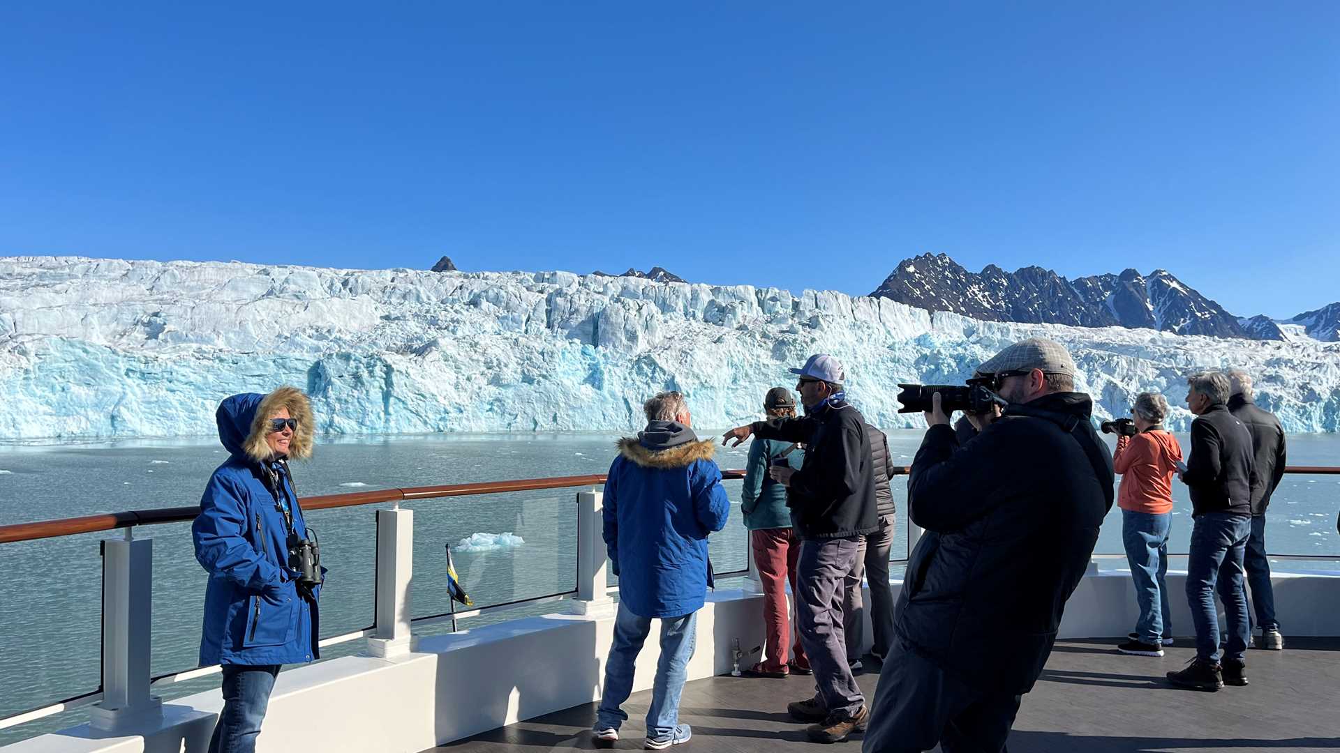 Blue skies in the High Arctic marked the start of the day on board National Geographic Endurance. We were all excited about the beginning of our expedition in Svalbard. During the morning, a keen expedition team introduced themselves to the guests. This was followed by a series of briefings that left us better prepared for the next few days. All this happened as we sailed along Krossfjord, a large fjord system located in the northeast of Spitsbergen, the largest island of the Svalbard archipelago. At the end of the fjord, the ship offered spectacular views of Lilliehookbreen, the largest of several glaciers present in the area. We all enjoyed the sound of the calving ice and views of kittiwakes, auks, and arctic terns as the birds fed in the water, flew around the ship, and rested on glacial ice.