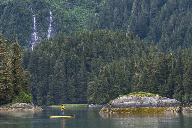 Throughout the afternoon we kayaked through the tidewater lagoon, viewed wildlife on Zodiac tours, and went stand-up paddle boarding. Our undersea specialists dove in the bay and found anemones, sea cucumbers, any many species of fish in the unique brackish ecosystem at the mouth of the river. We saw young salmon swimming in the river, bears eating barnacles on the coast, and a mother deer nursing her fawn. We wrapped up our final day with the guest slideshow and a dinner cruise through Peril Strait.