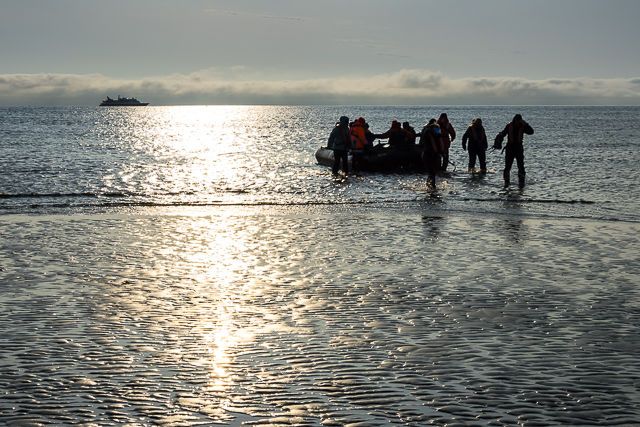 Having earned our lunch, we enjoyed a few minutes of relaxation on the ship as we repositioned to Saook Bay, a bit further west into Peril Strait. Here was one last chance at more small boat cruises, kayking, and (of course) a true Alaskan bushwhack hike. Several brave souls went off the beaten track to tromp over stumps and through tall grasses to see what lay in these wild lands. They snacked on wild salmon berries and photographed flowers before finally resting in the sun to wait for their ride back to the ship. Meanwhile, kayakers explored the marshy tip of the bay, paddling through tall grasses and along green meadows.